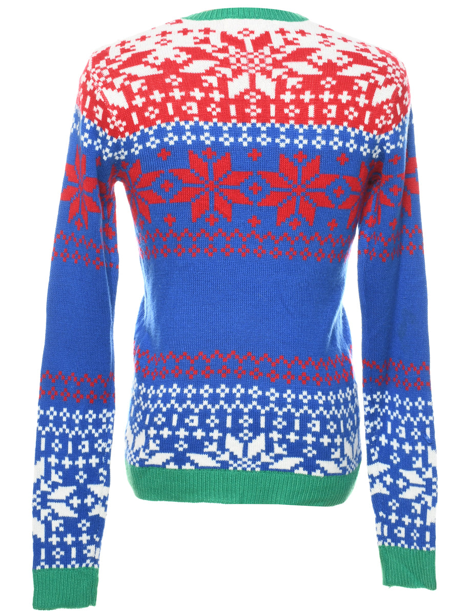 Santa claus christmas jumper comes in multi-colour with an applique design and beading.