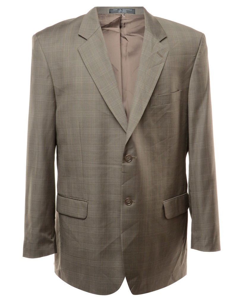 Woollen blazer in brown with checked pattern, a revere front and full lining.