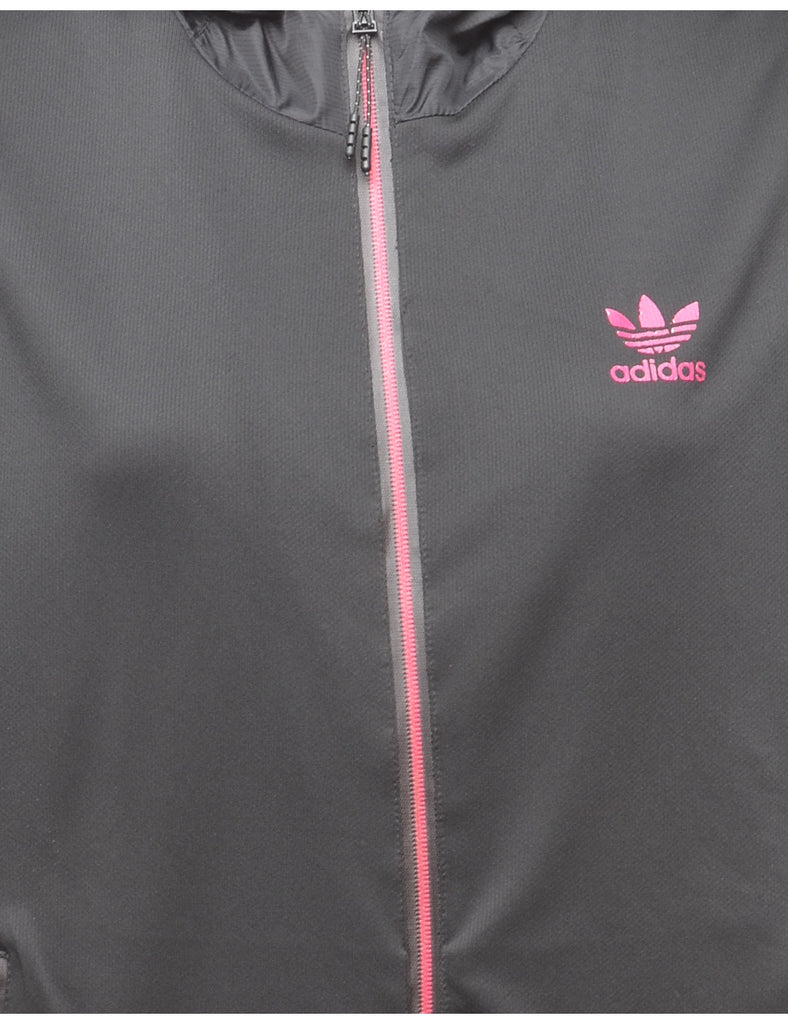 Adidas zip front jacket. Comes in black with a hood and pockets.
