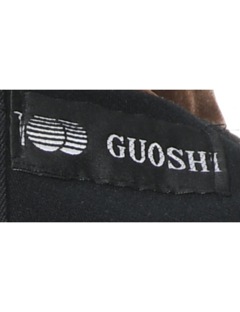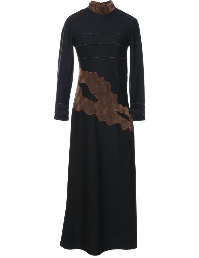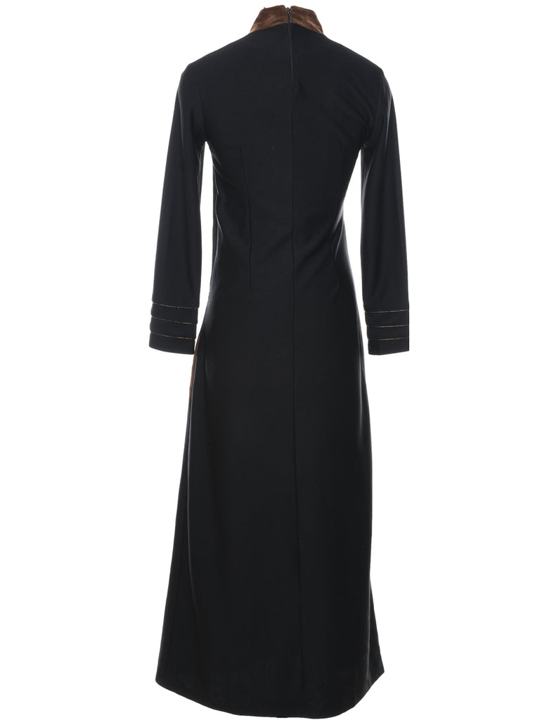 Black & brown 1990s maxi dress complete with a high neck and full lining.