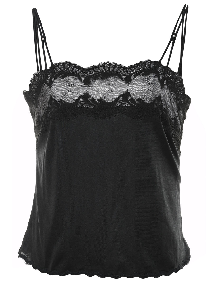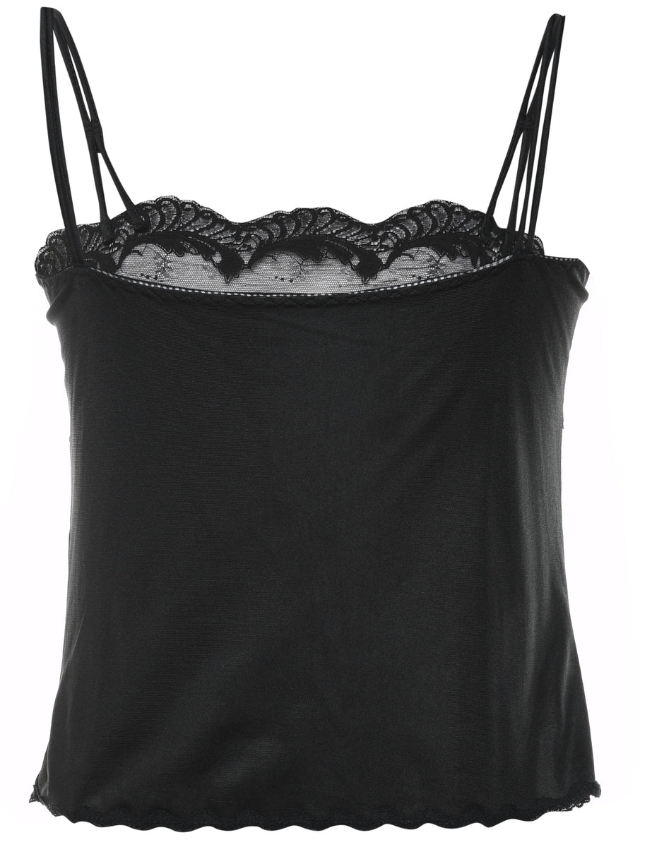 Vintage Black Classic Lace Trim Cami Top - M