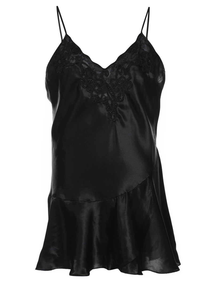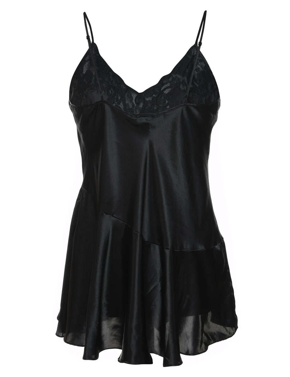 Lace slip in black with adjustable straps and beading. The size label mentions L but based on the actual measurements we consider it a size M.