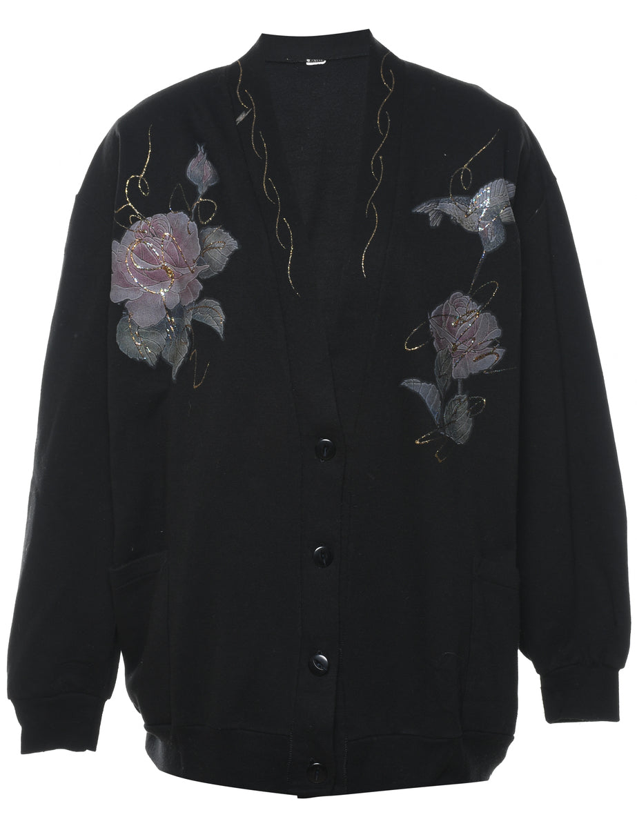 Vintage Black & Purple Floral Cardigan - L
