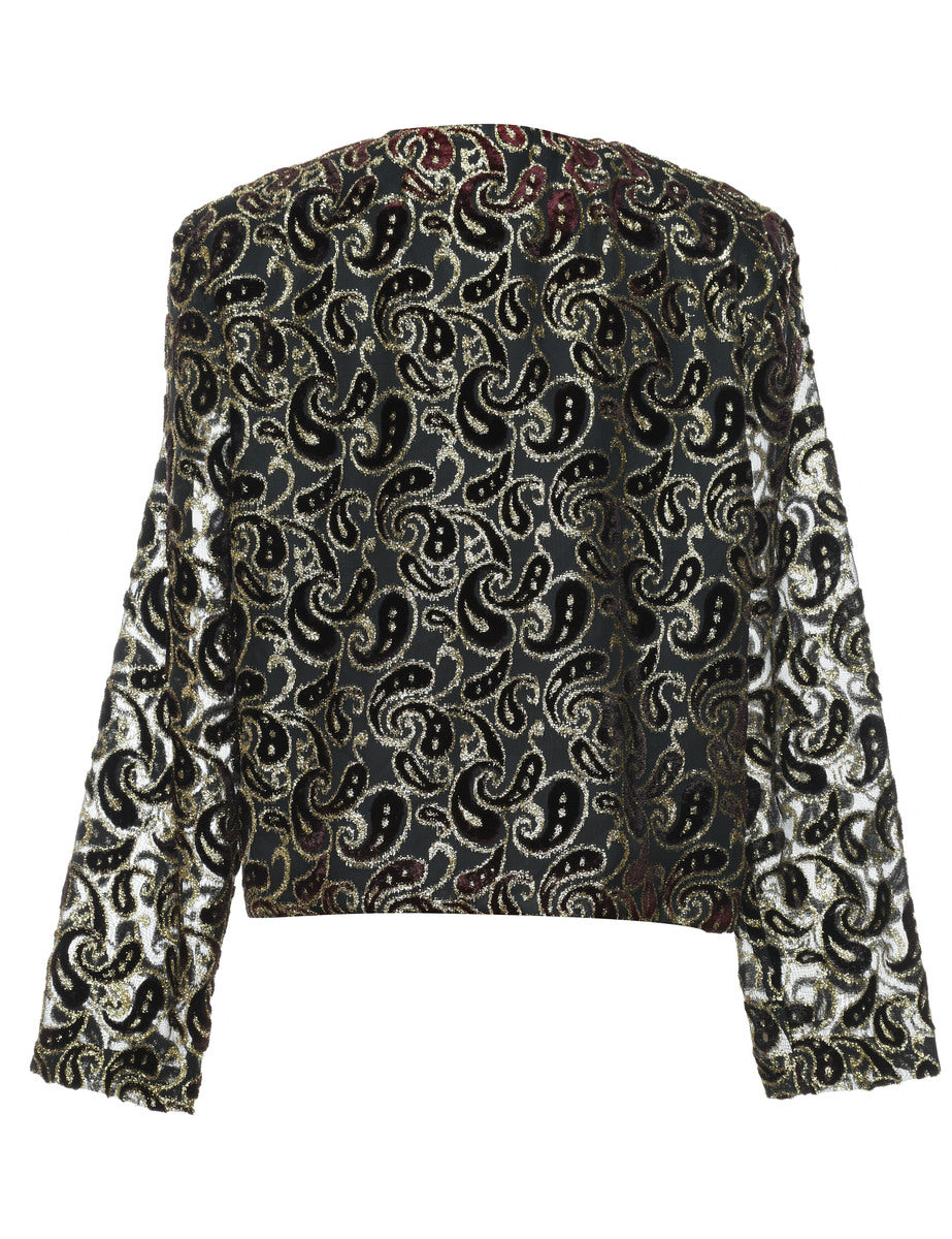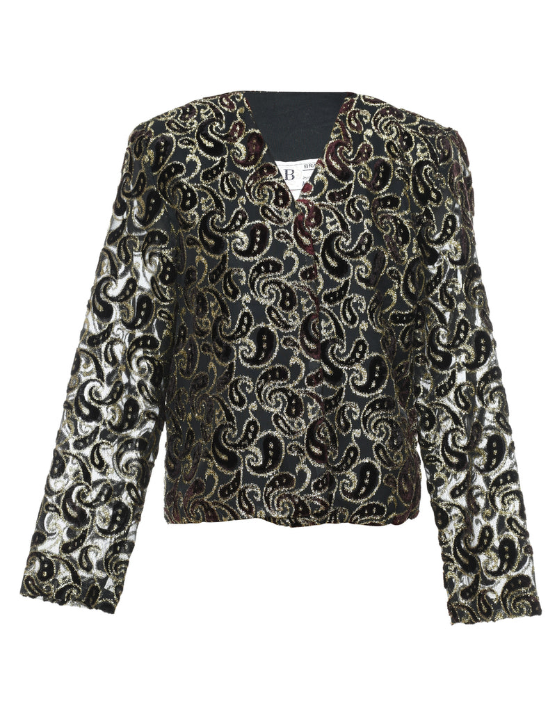 Black & silver paisley design glittery evening jacket complete with removable shoulder pads.