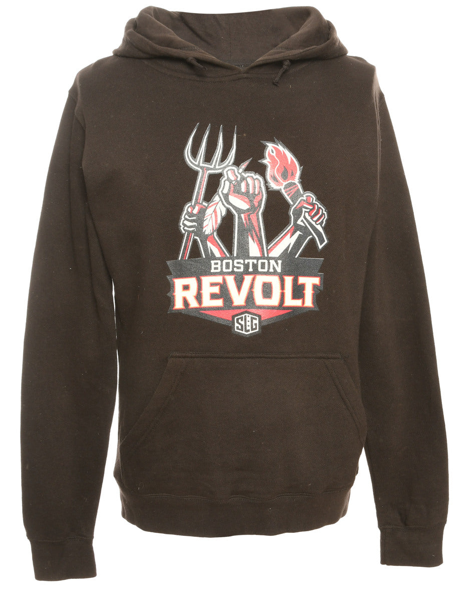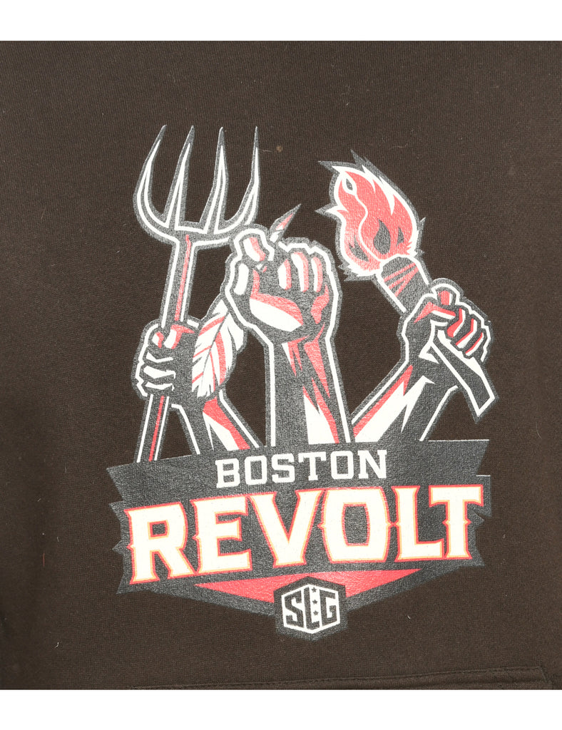 Boston revolt hooded sports sweatshirt in black with a pocket.