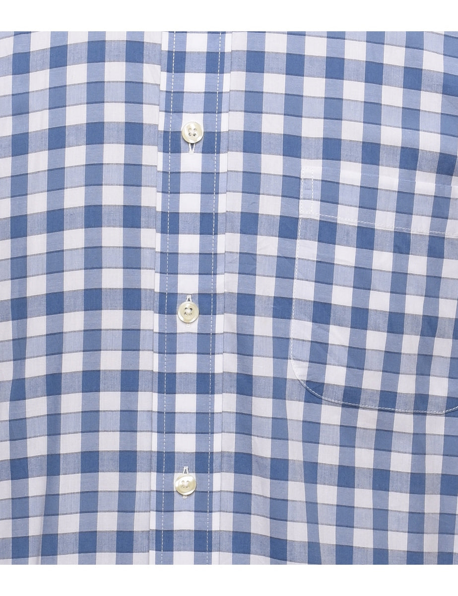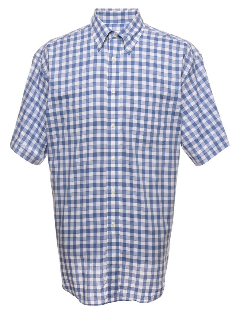 Brooks Brothers White & Blue Short Sleeve Checked Shirt - L