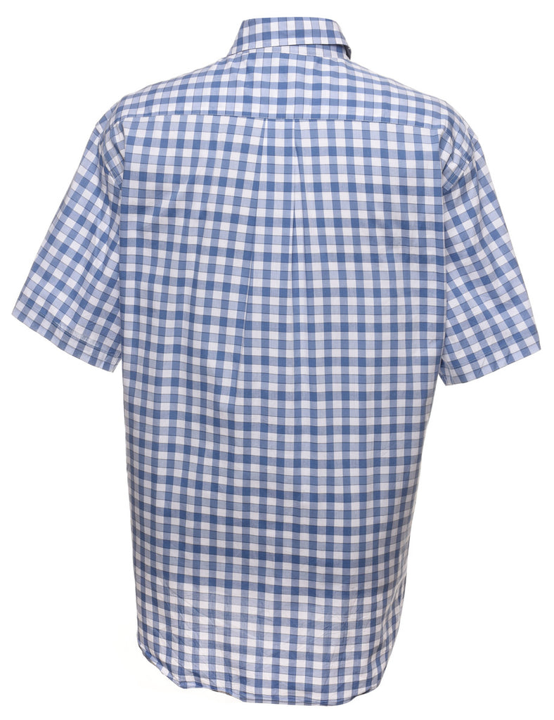 Brooks Brothers short sleeve checked shirt in white & blue with one pocket.