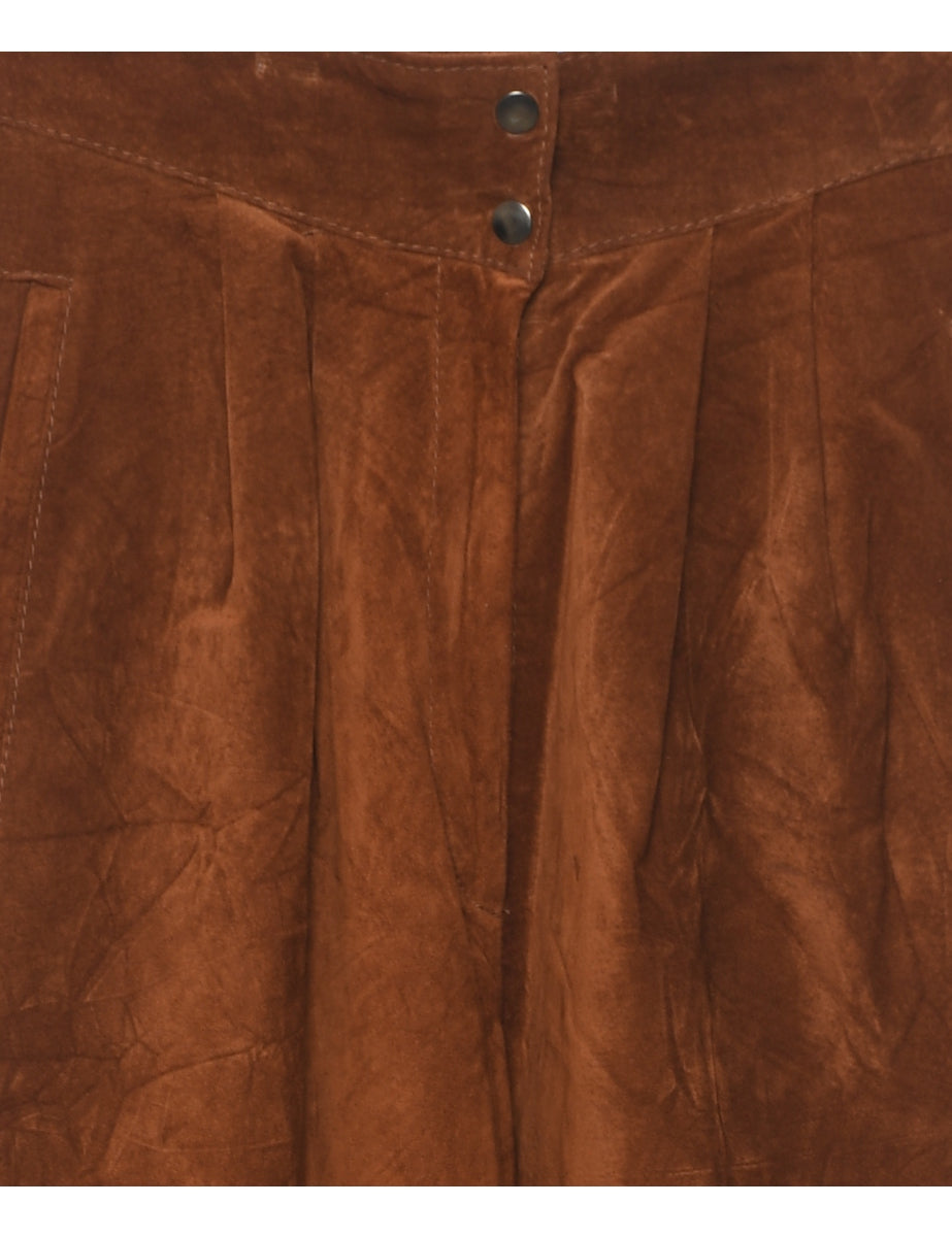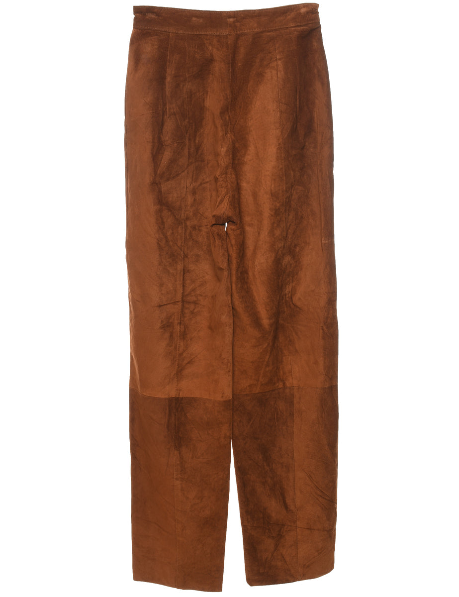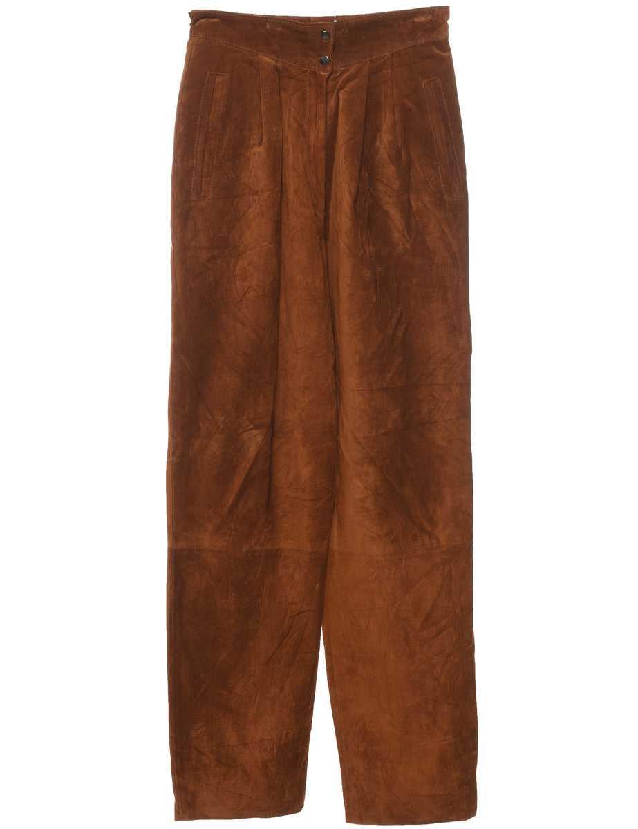 Vintage Brown High-Waist Suede Trousers - W26 L30