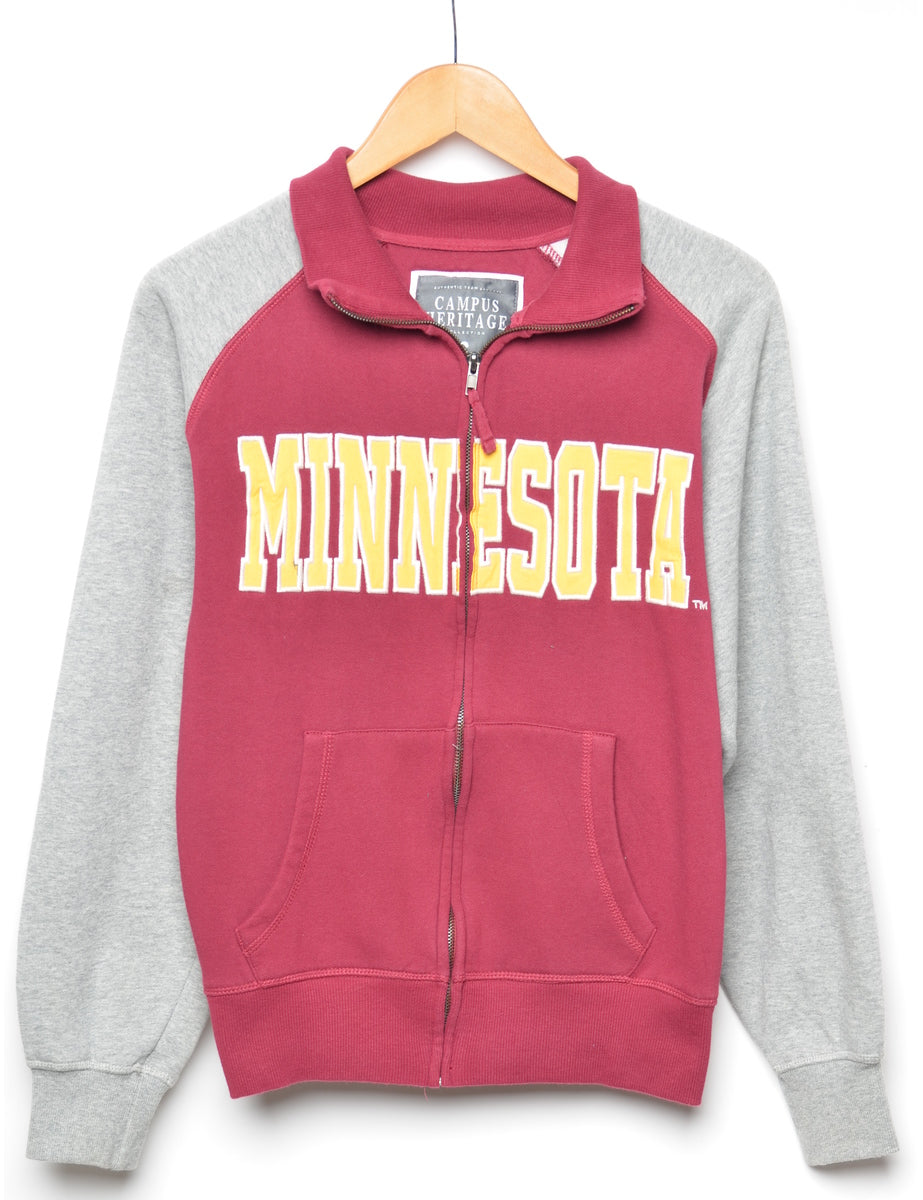 Burgundy & grey minnesota printed sweatshirt with raglan sleeves.