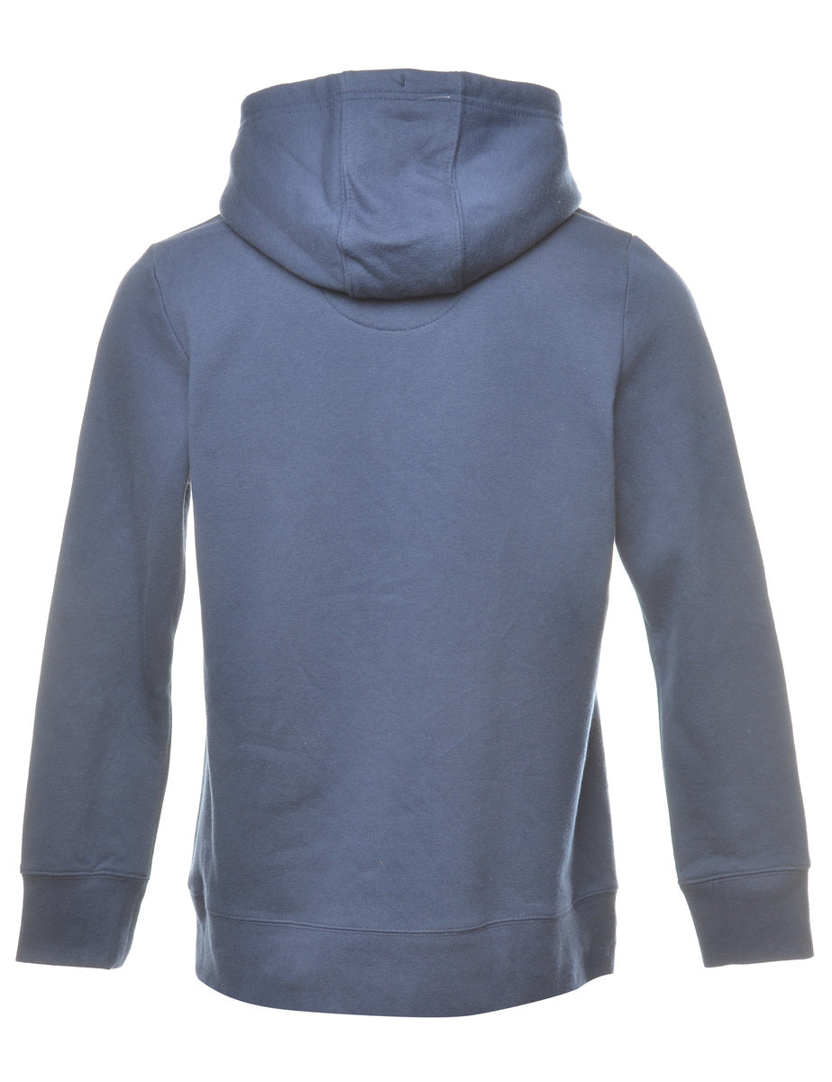 Champions damage done printed hoodie comes in navy with a drawstring neck and one pocket.