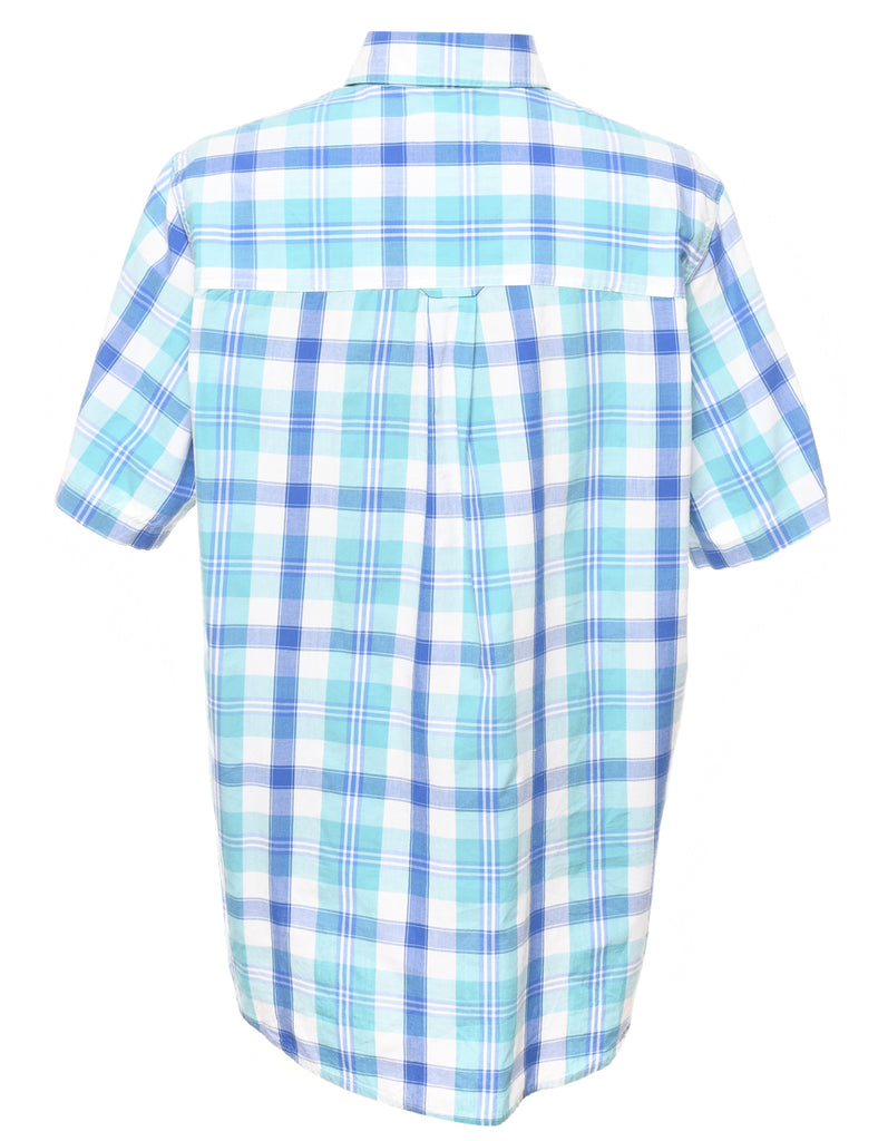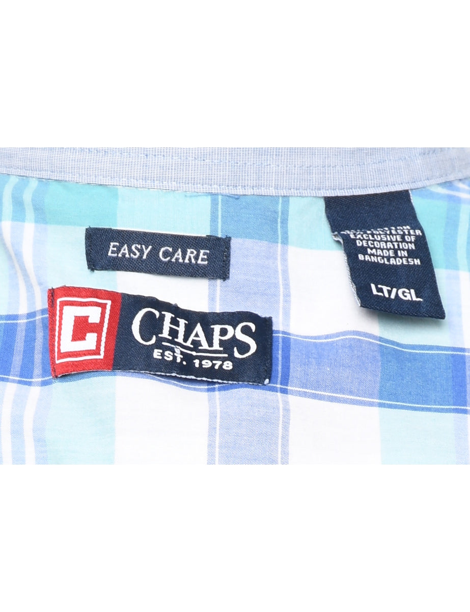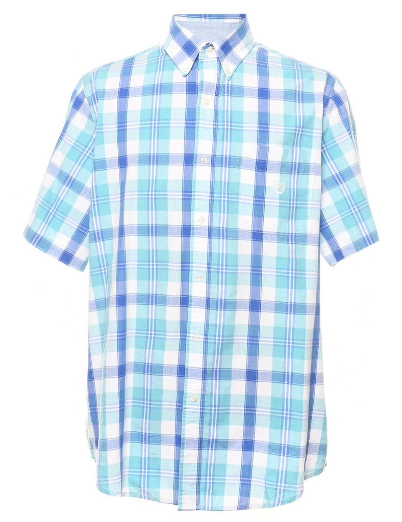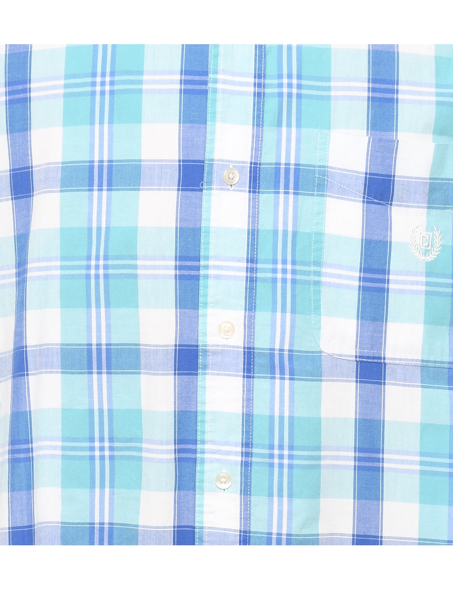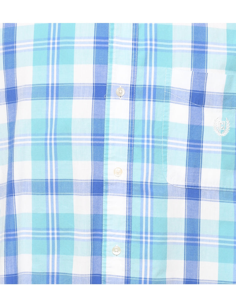 Short sleeve checked shirt in blue & white with one pocket. From the brand Chaps.