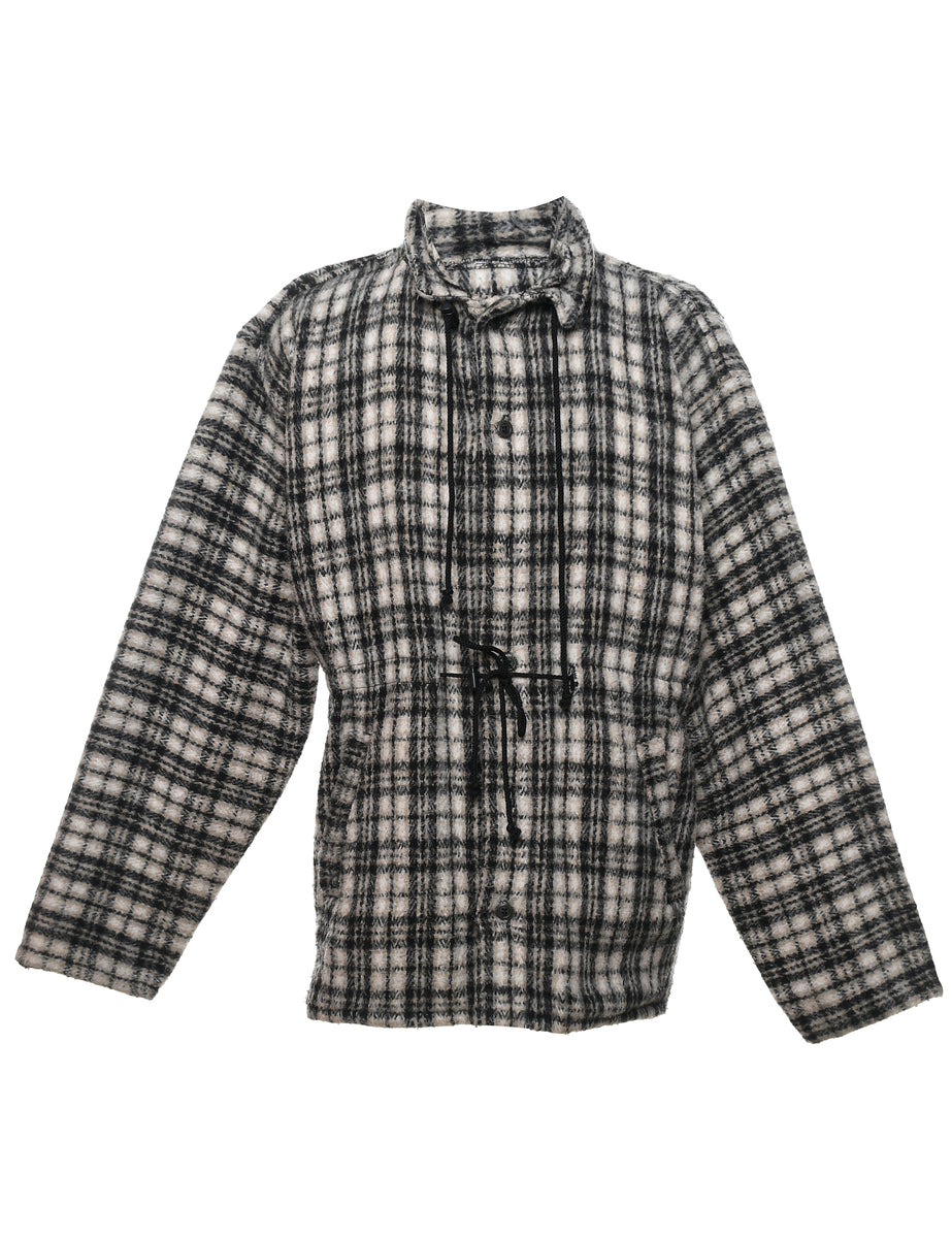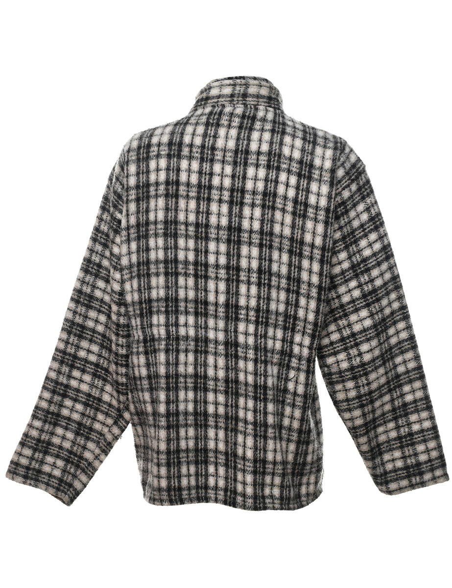 Vintage Checked Grey, White & Black Zip-Front Jacket - XL