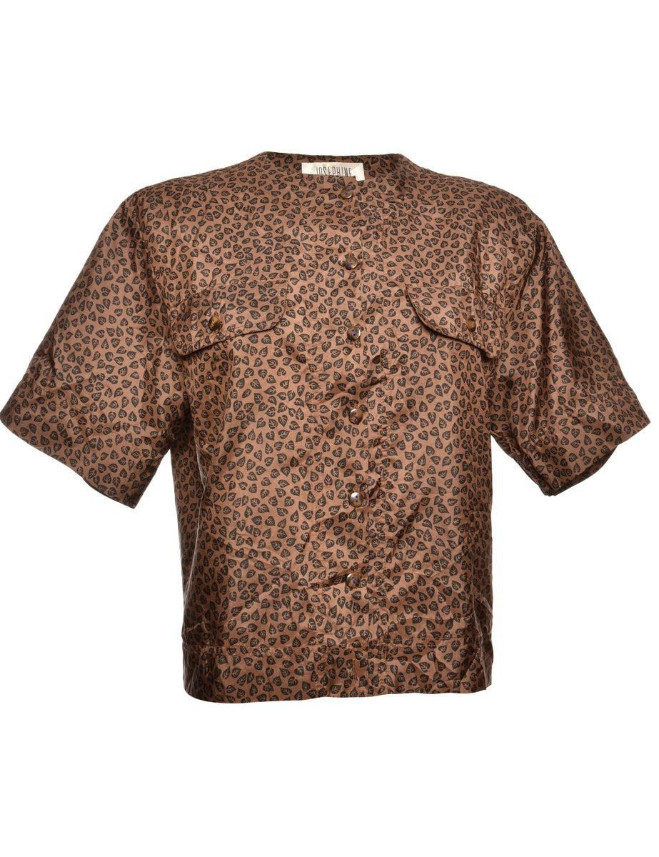 Vintage Dark Brown & Black Leafy Printed Top - M
