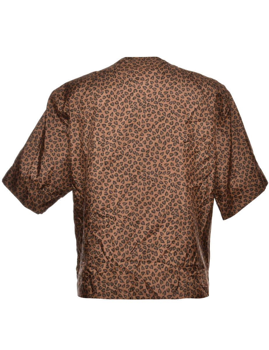 Dark brown & black leafy print top complete with built-in shoulder pads.