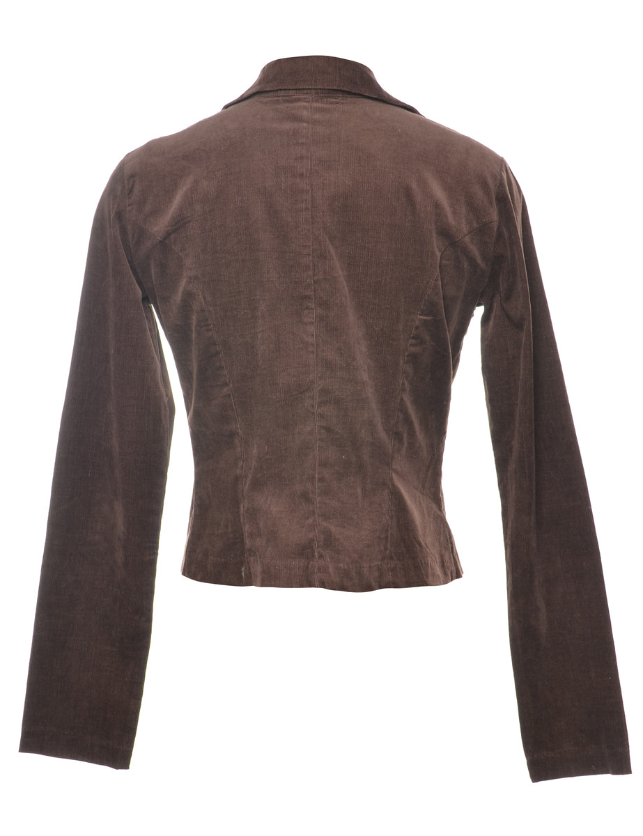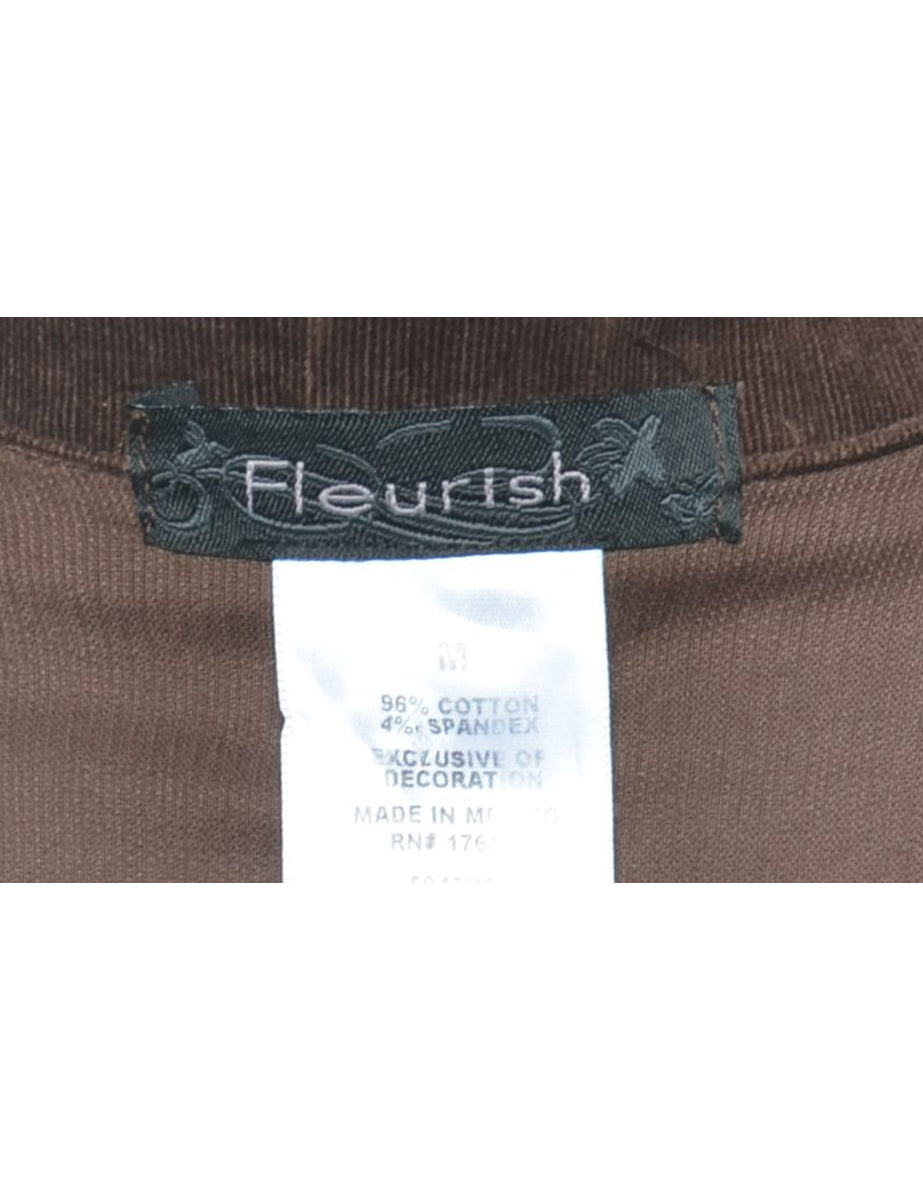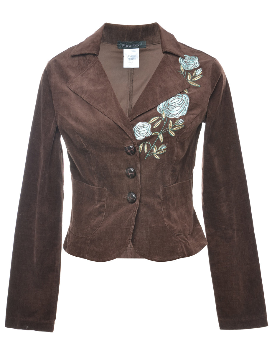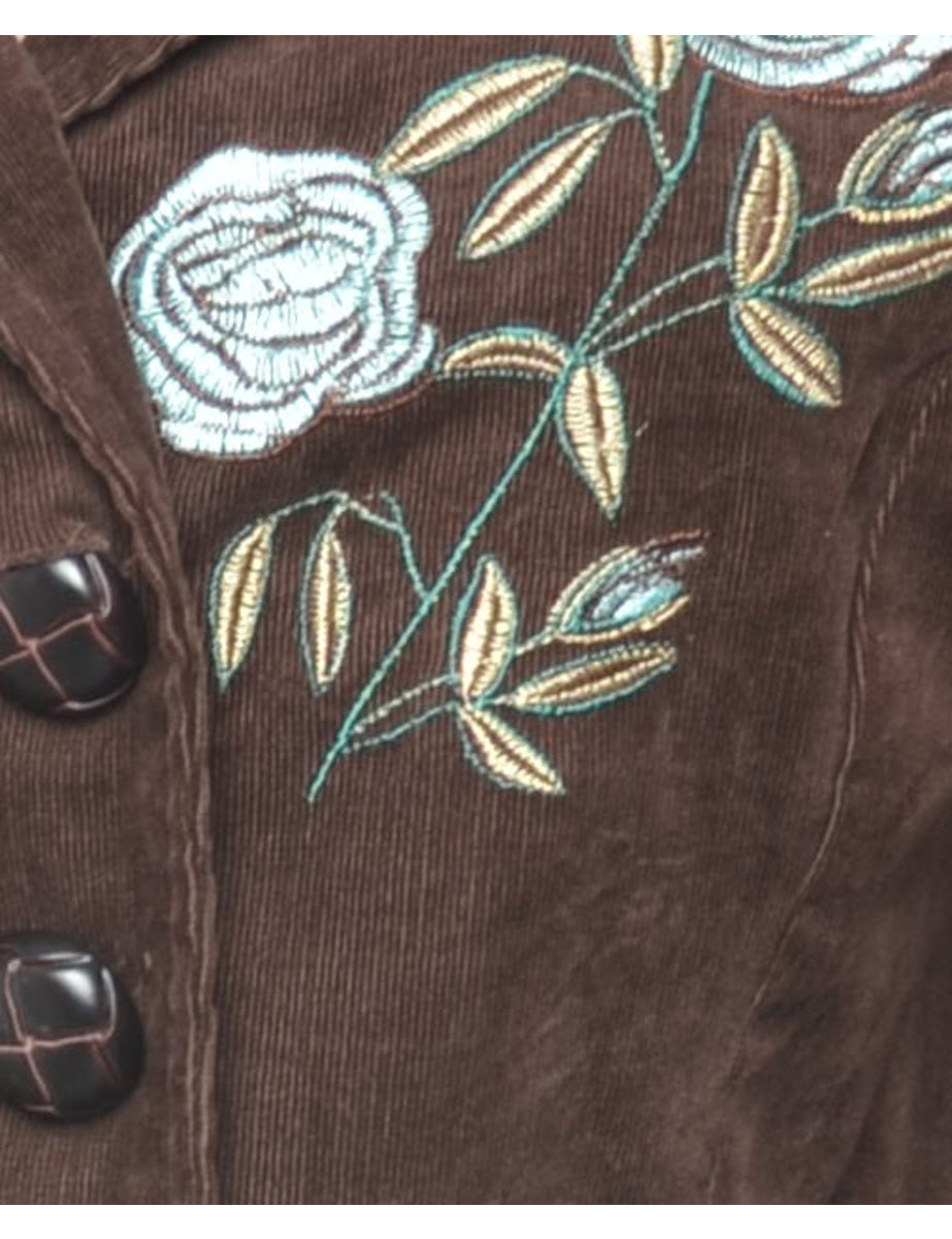 Vintage Dark Brown & Light Blue Embroidered Corduroy Jacket - M