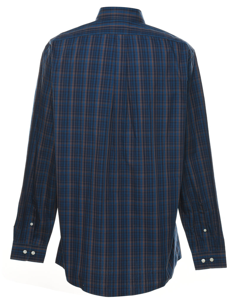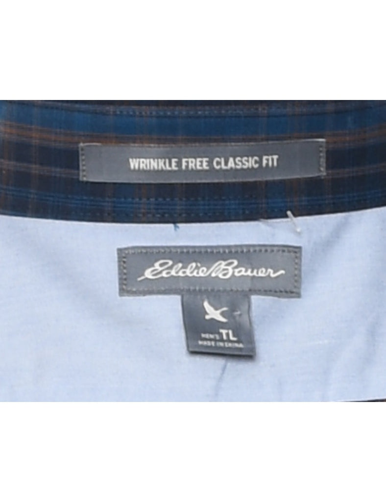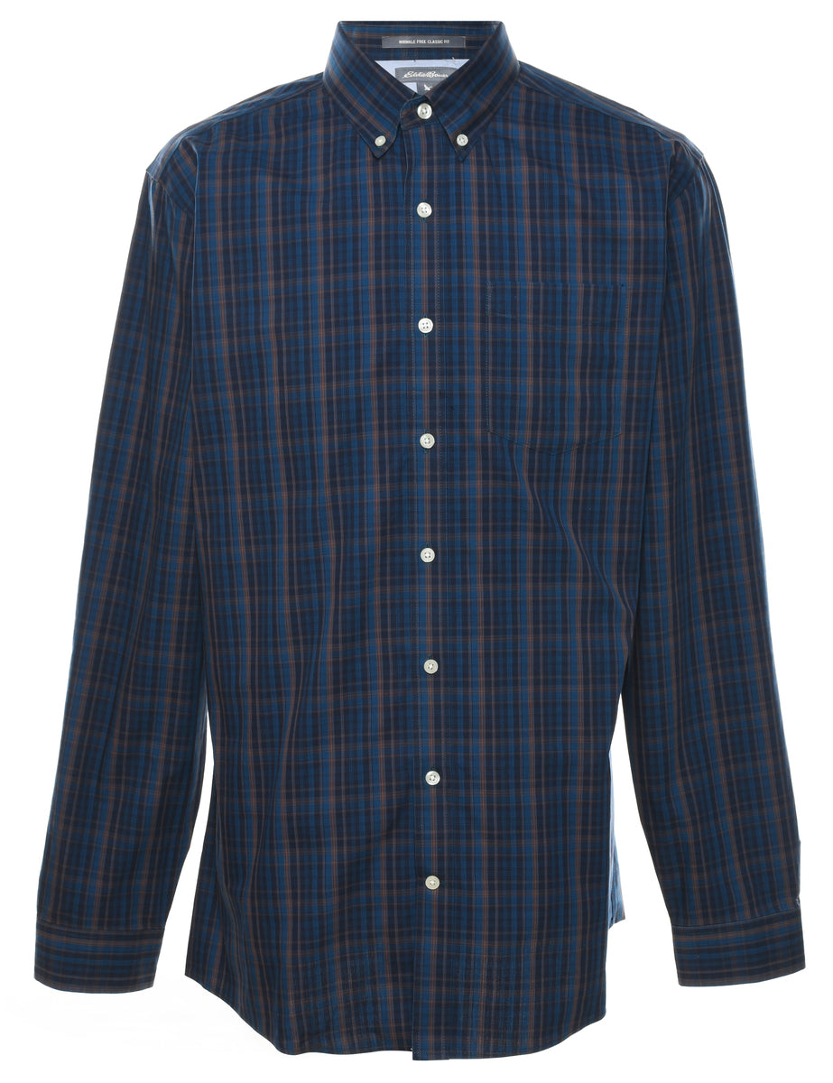 Eddie Bauer classic checked shirt in navy with one pocket.
