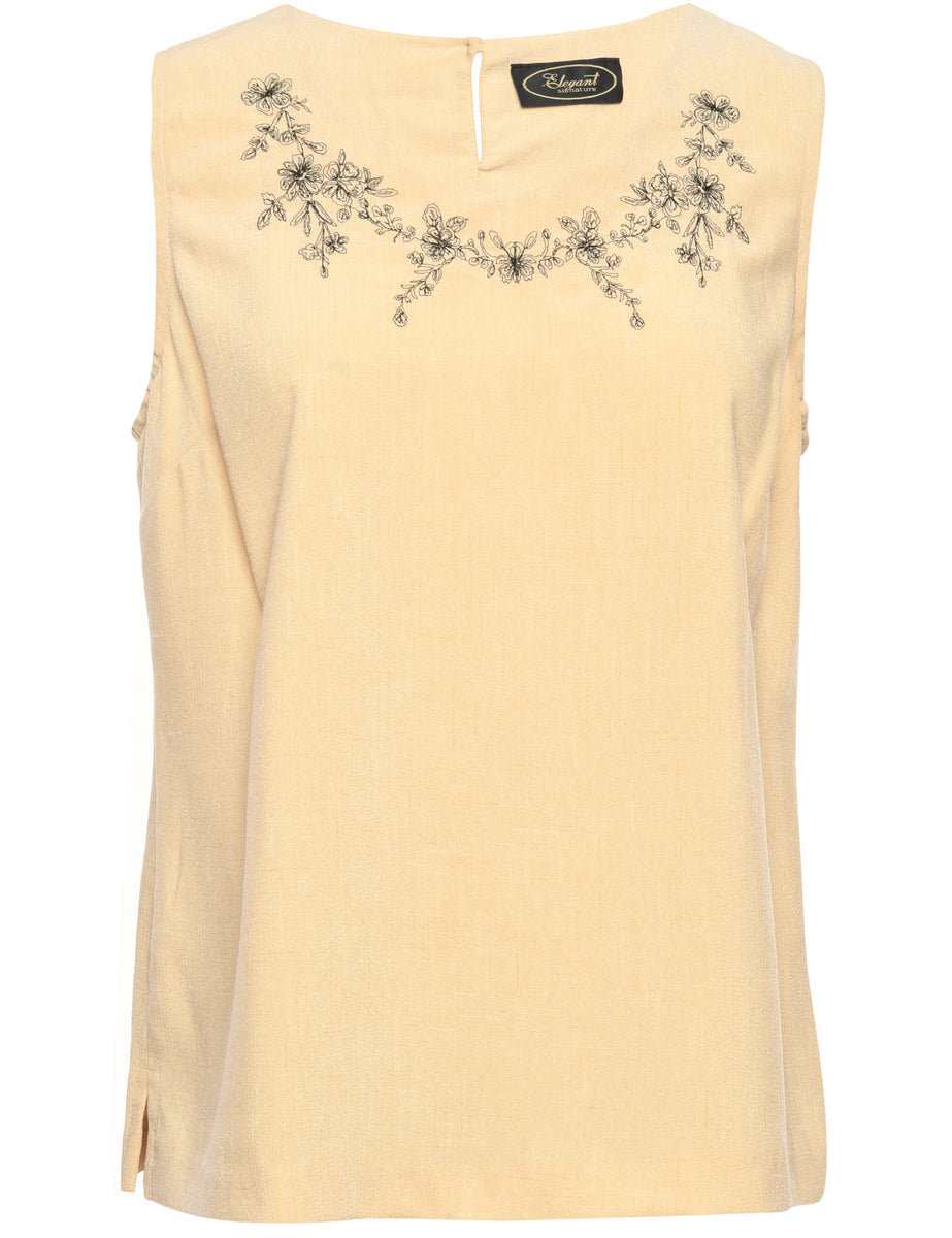 Vintage Embroidered Tan Blouse - M