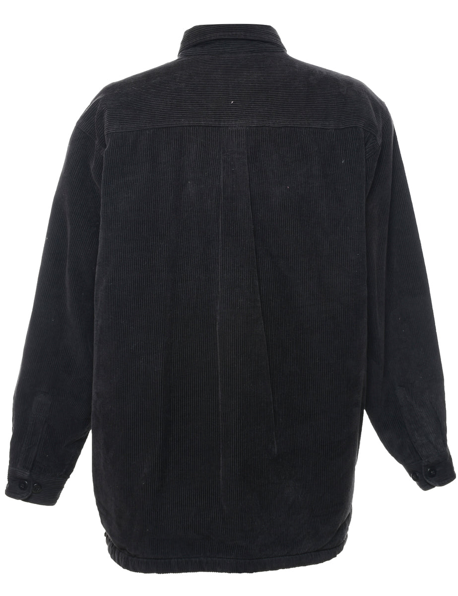 High Sierra corduroy shirt comes in black with faux shearling lining and pockets.