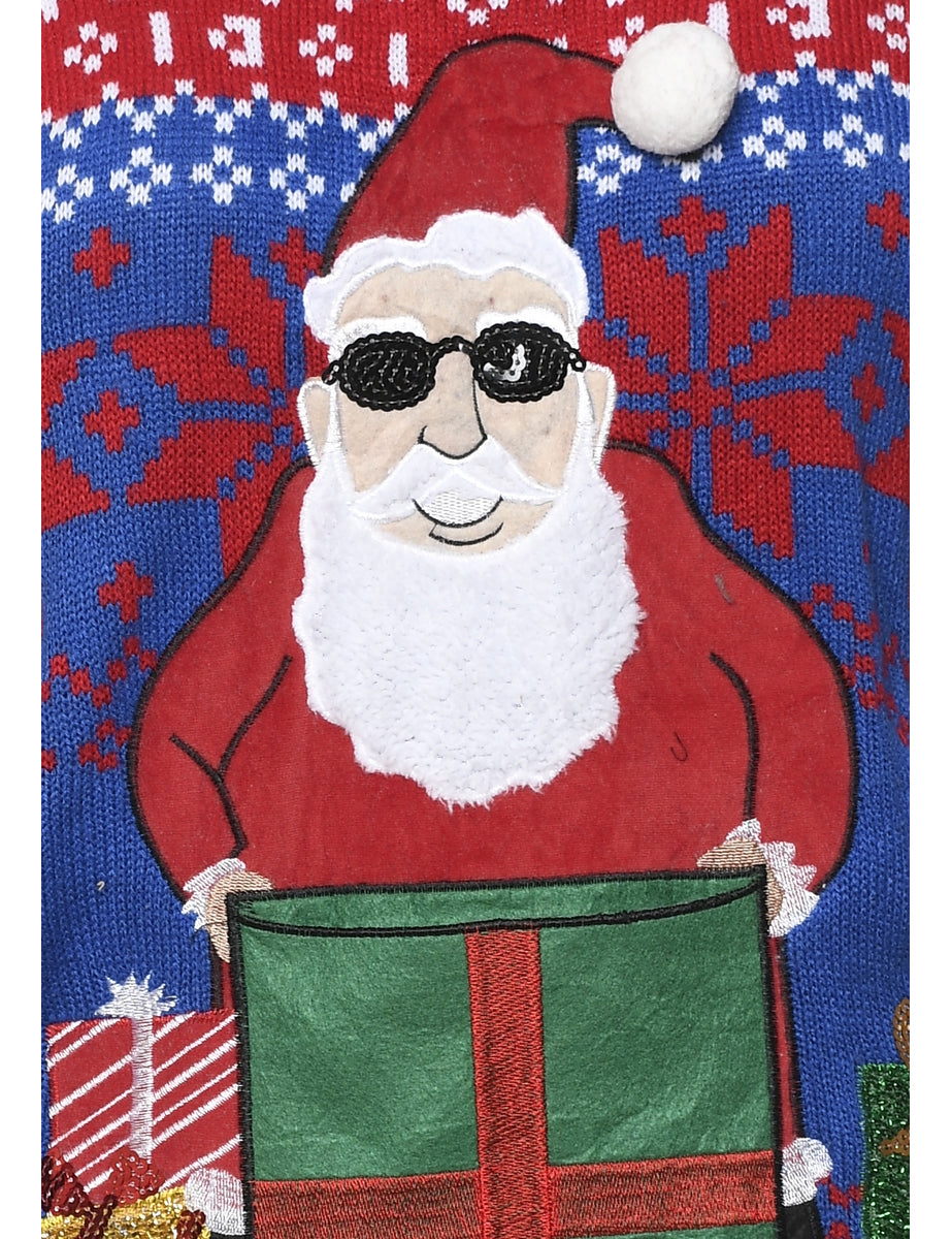 Festive gifts christmas jumper comes in multi-colour with santa claus design, a round neck and an applique design.