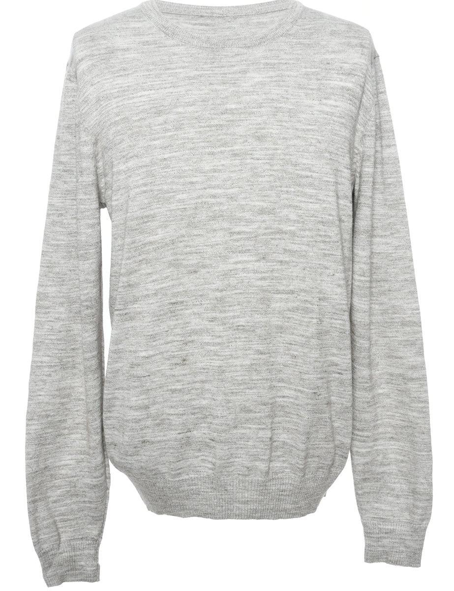 Fine knit marl grey jumper with a ribbed neck and cuffs.