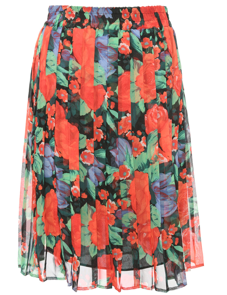 Vintage Floral Multi Colour Midi Skirt - M