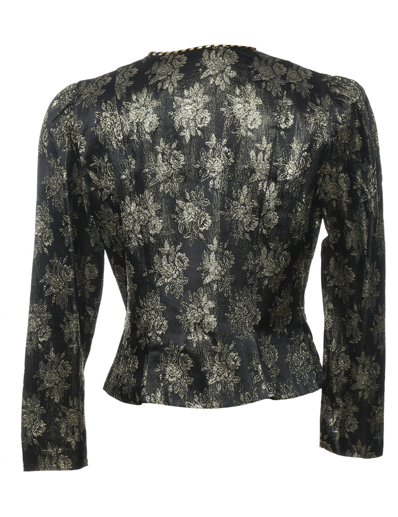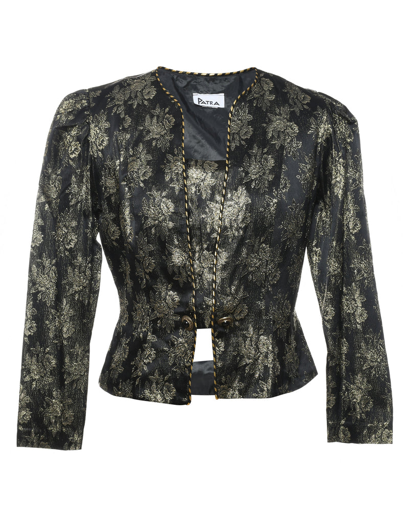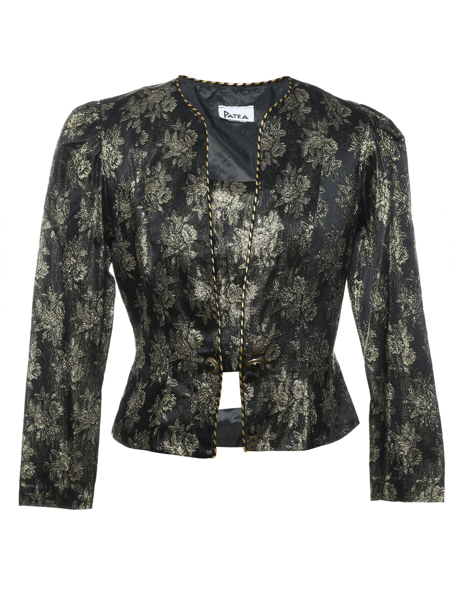 Floral Pattern Black & Gold Metallic Sparkly Evening Jacket - M