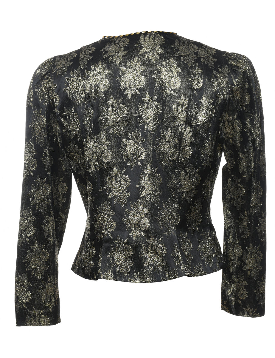 Floral pattern black & gold metallic sparkly evening jacket with full lining.