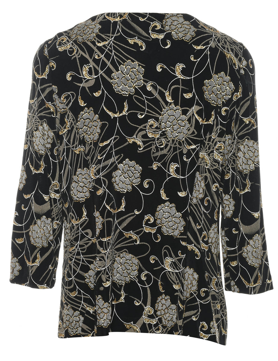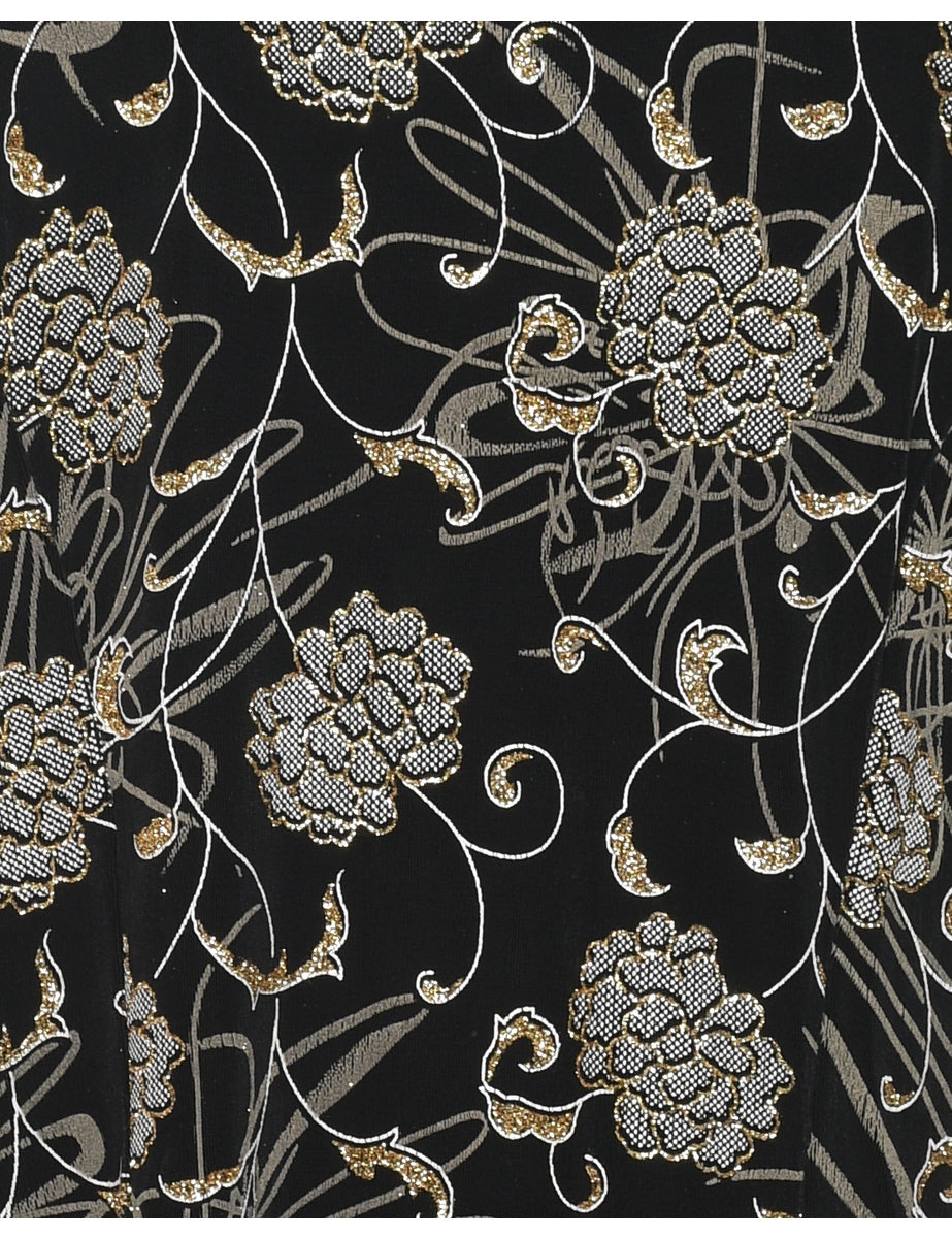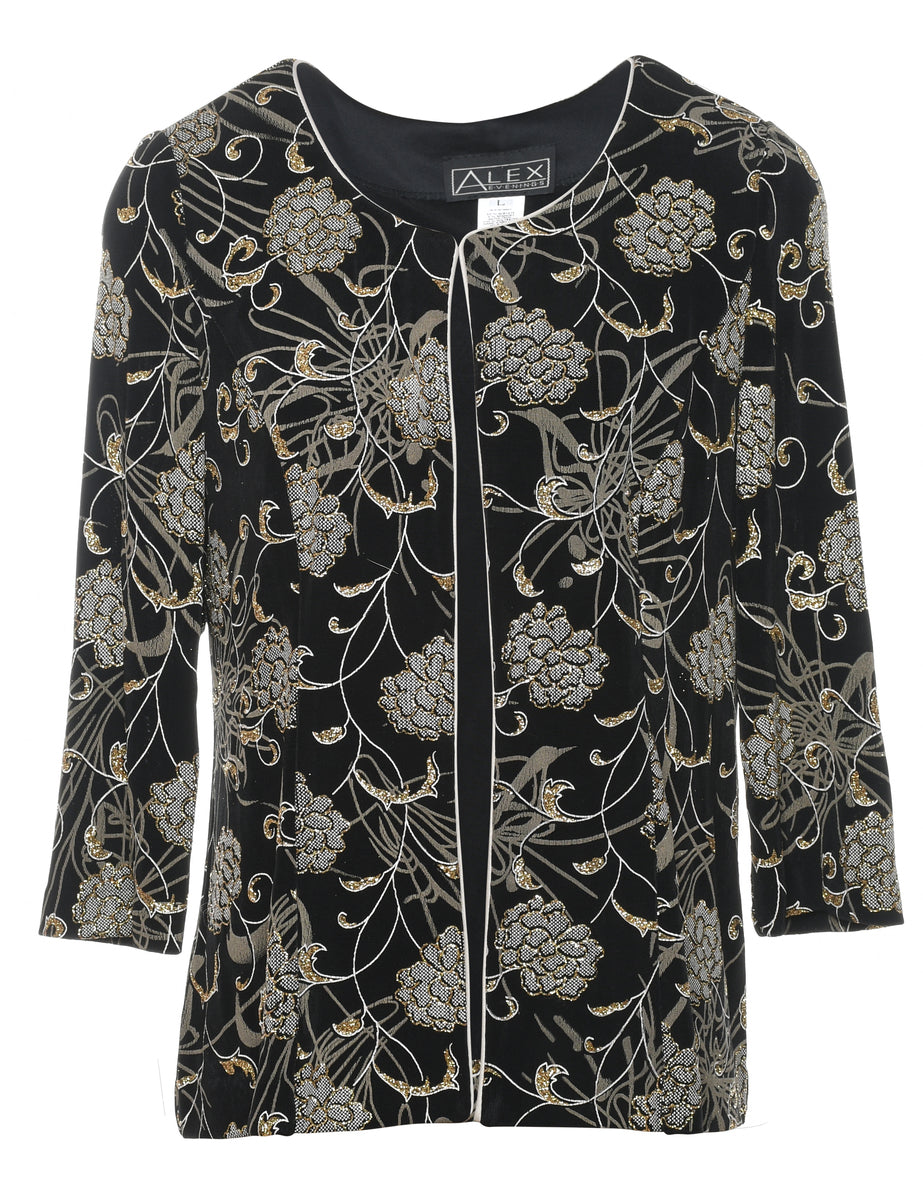 Floral Pattern Black & Silver Evening Jacket - L