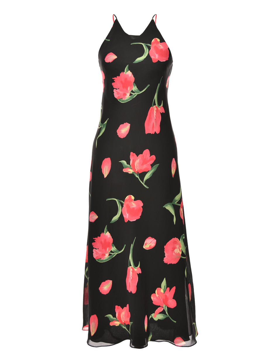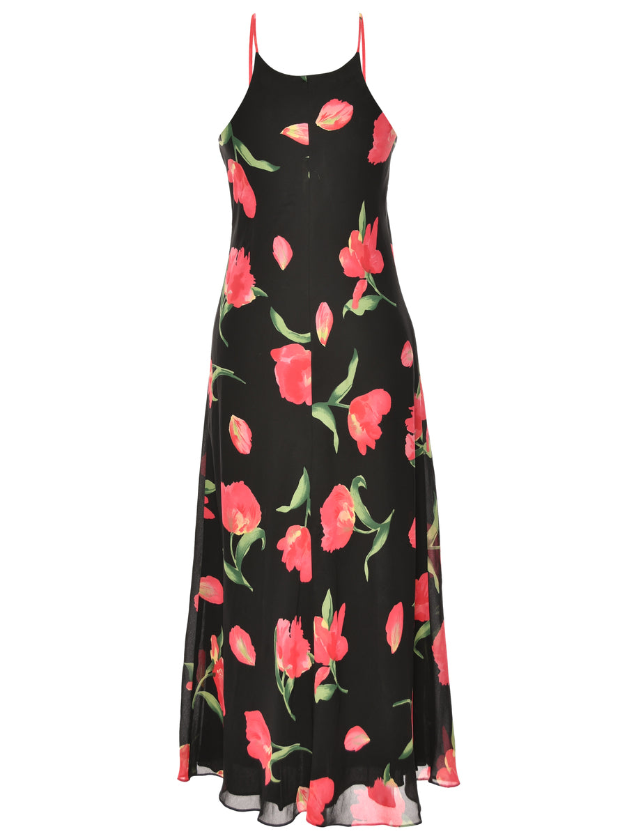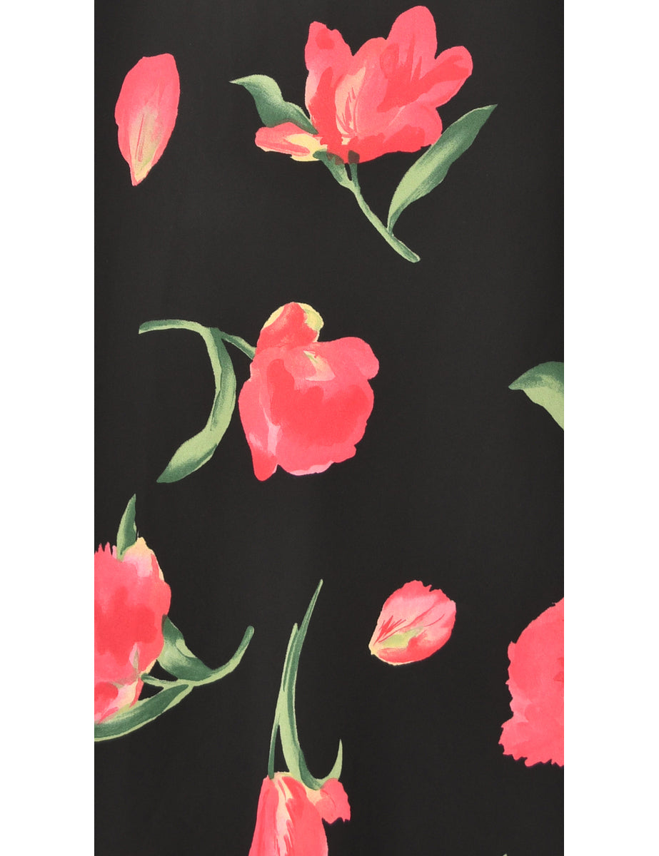 Vintage Floral Print Black & Pink Maxi Dress - L