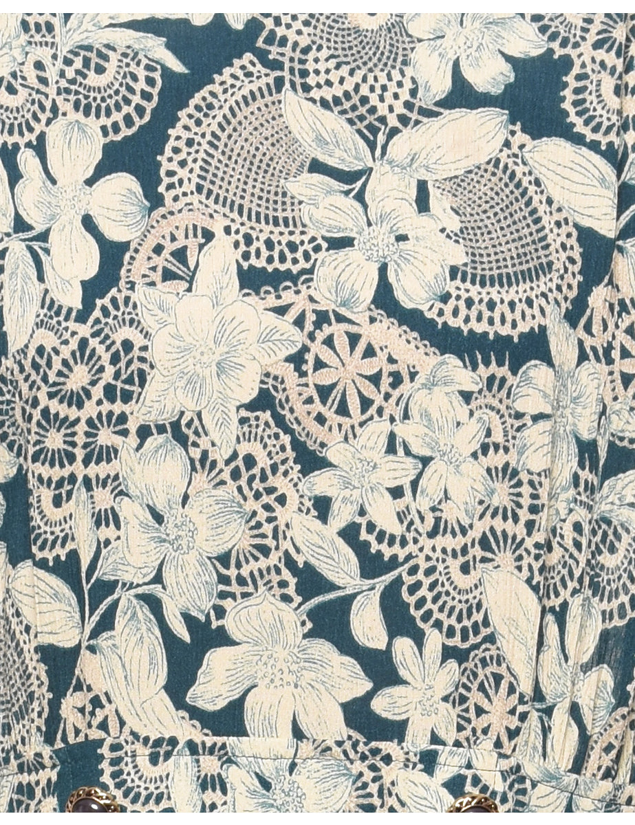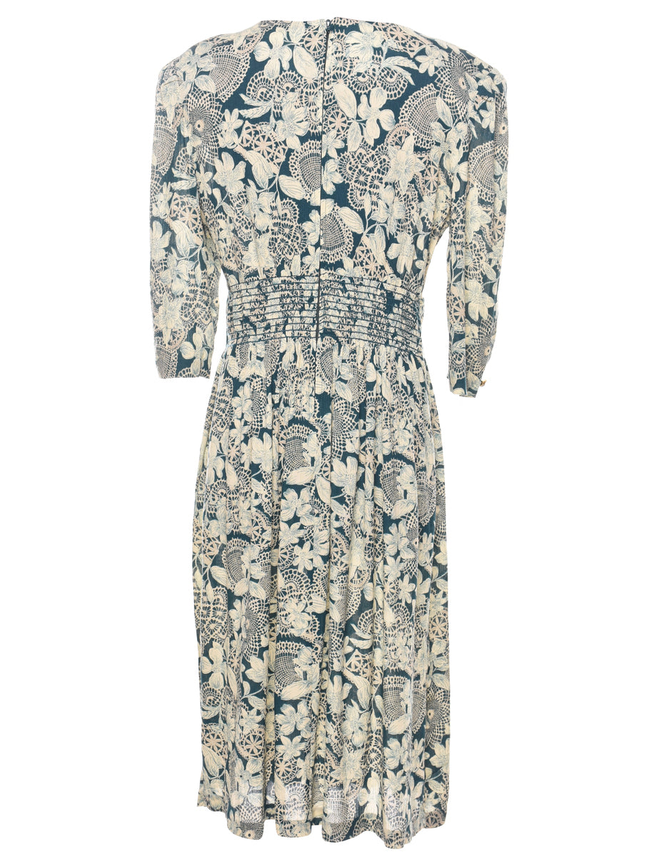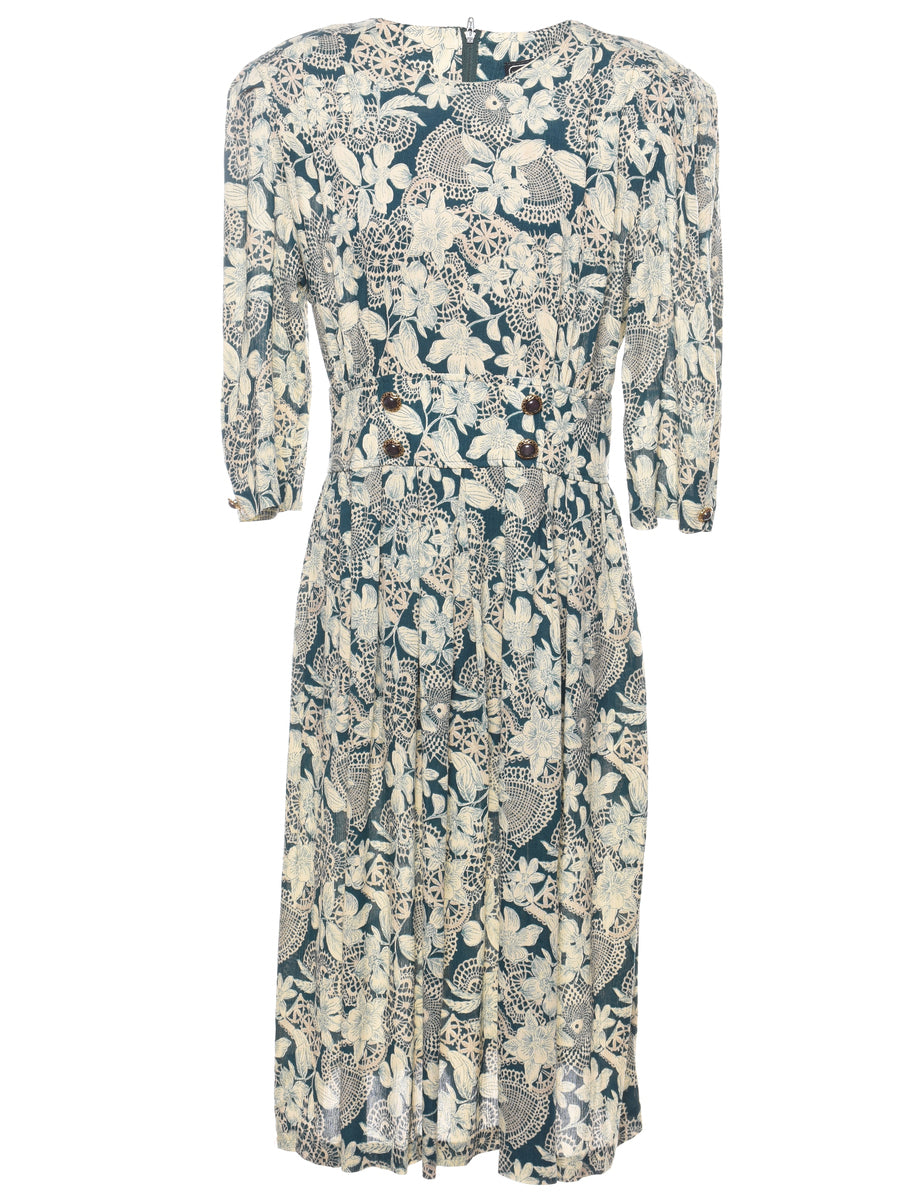 Floral print dress. Comes in dark green & off white with removable shoulder pads.