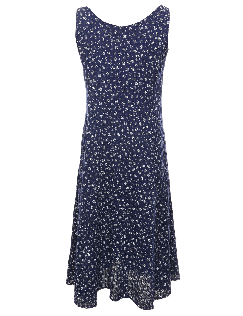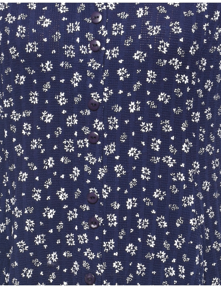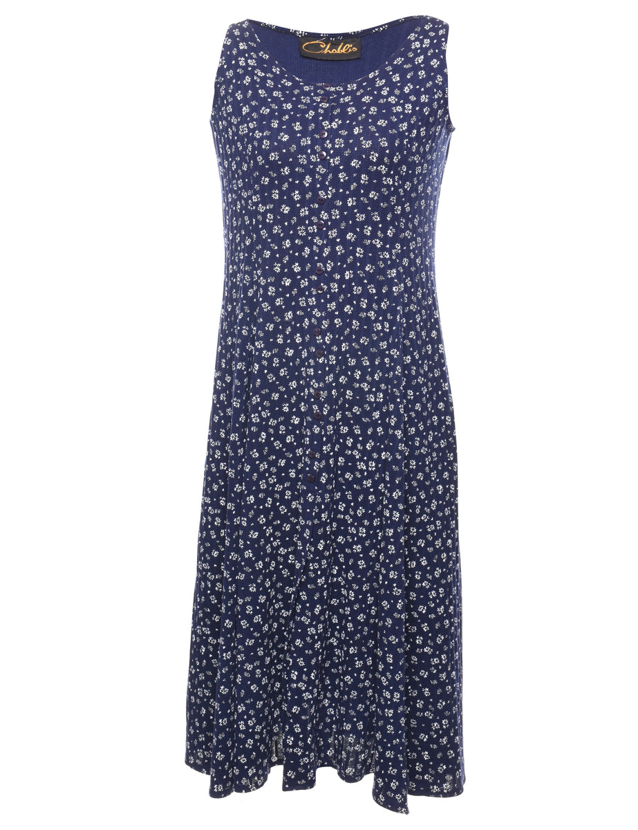 Floral print sleevelesss dress. Comes in navy with a button front.