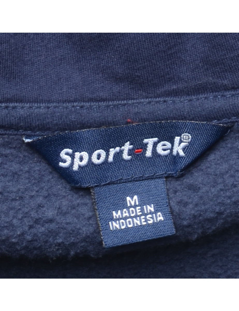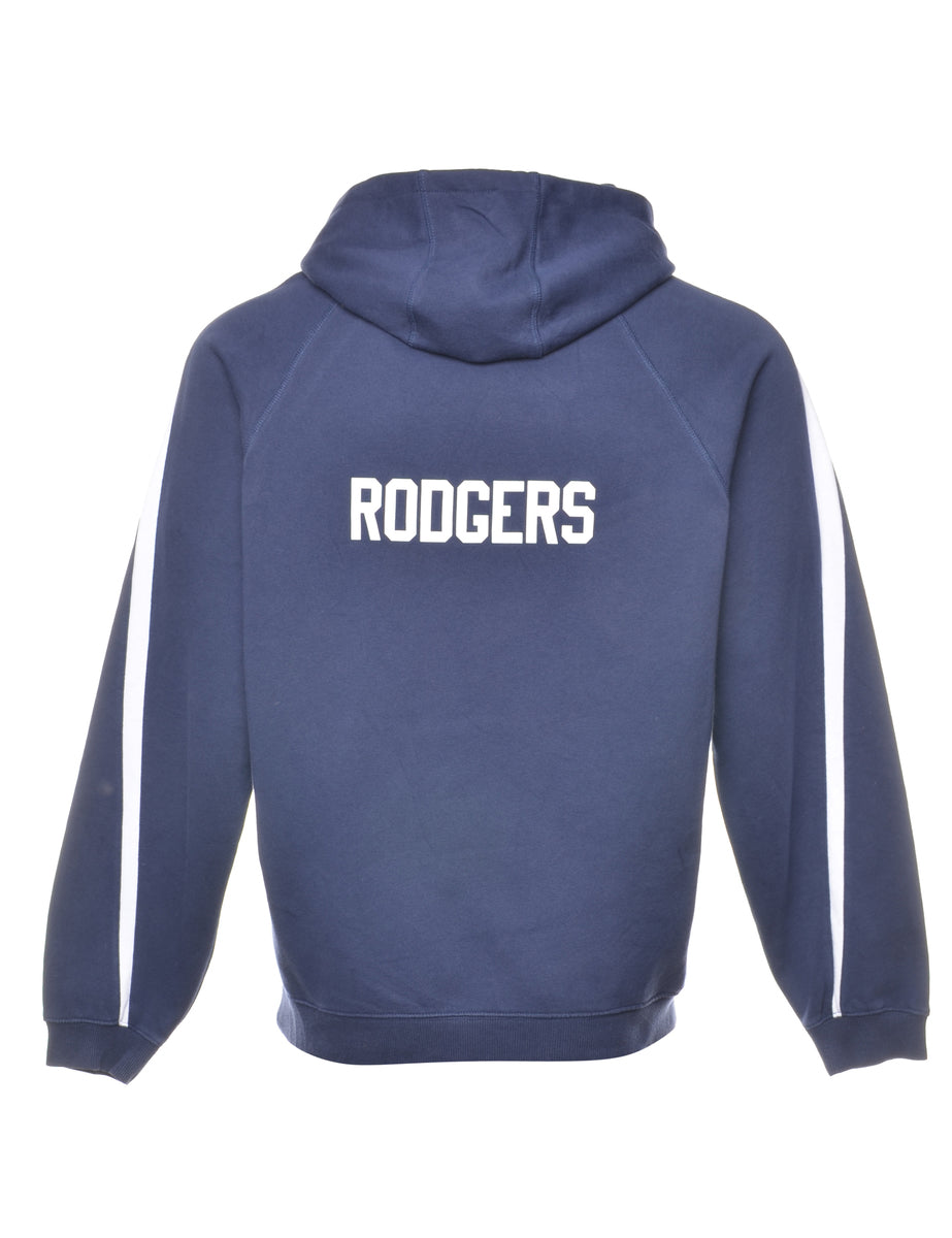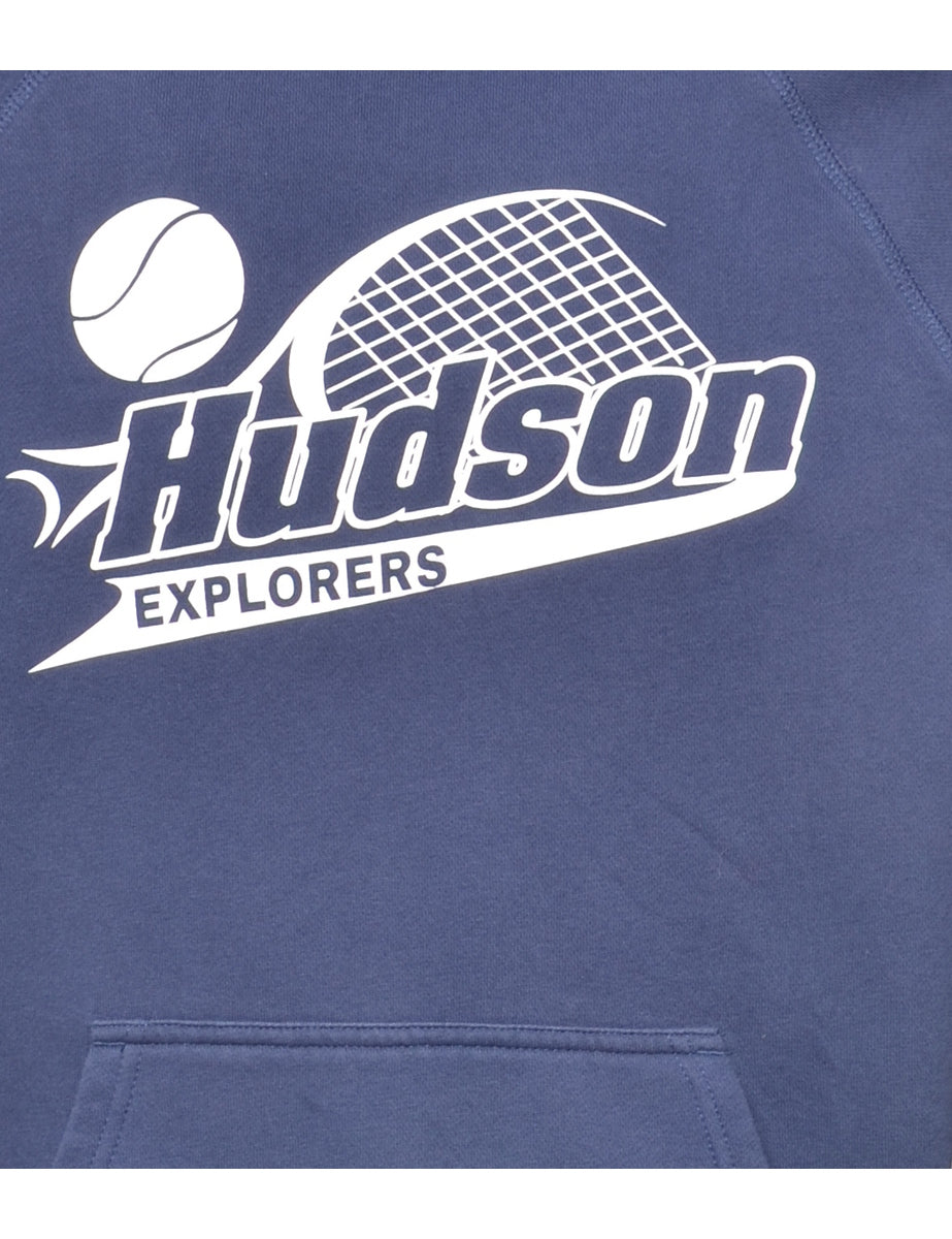 Hudson explorers printed hoodie in navy with contrasting panels and ribbed cuffs and waistband.