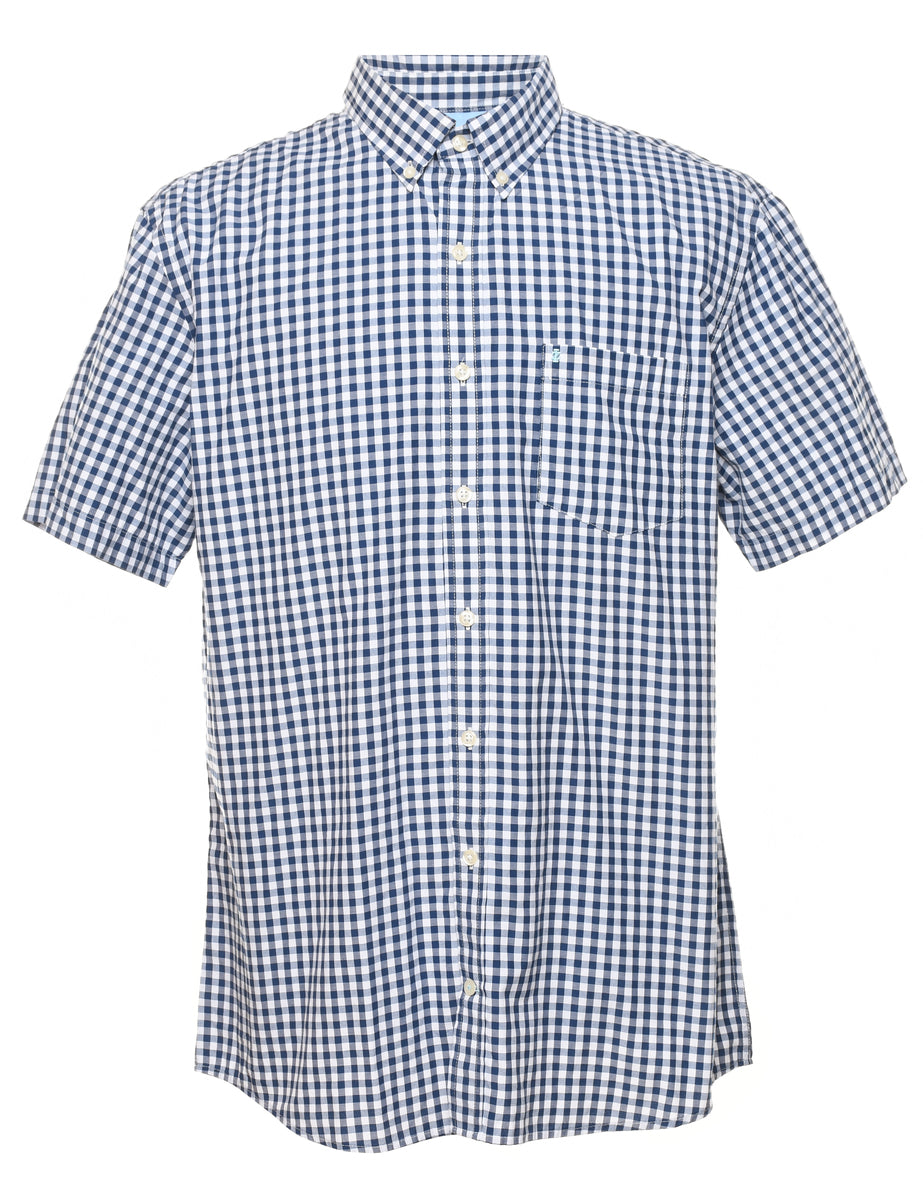 Izod short sleeve checked shirt. Comes in navy & white with one pocket.