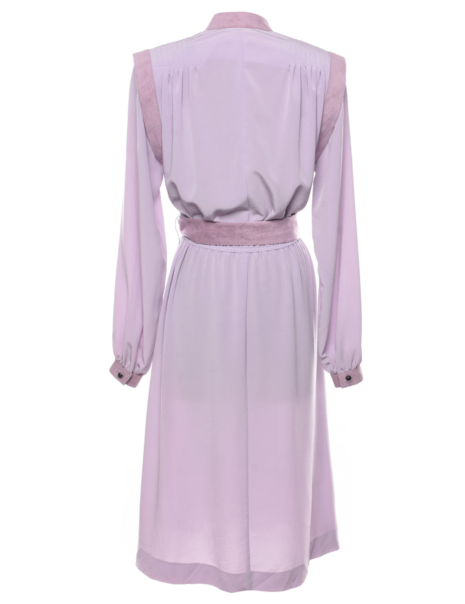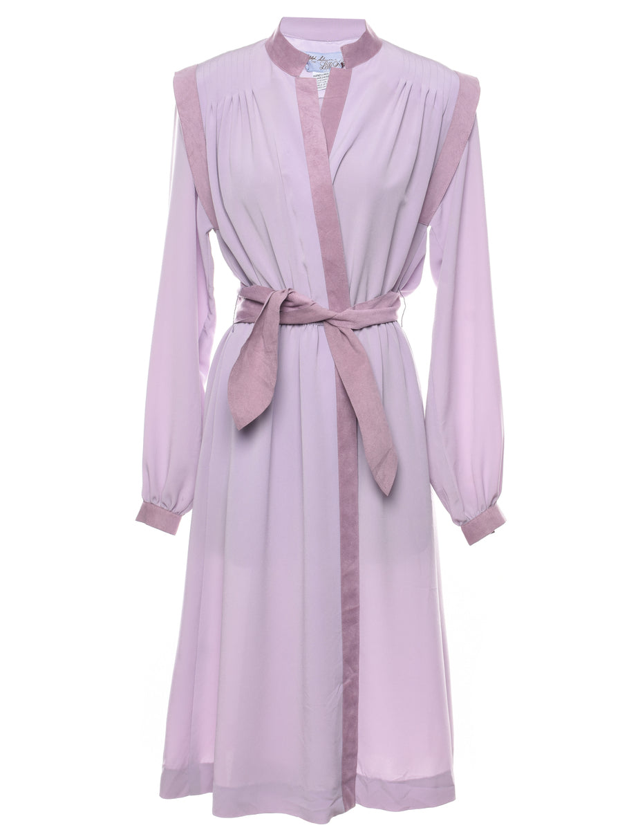 Long sleeved dress. Comes in lilac with pleating and a belt.