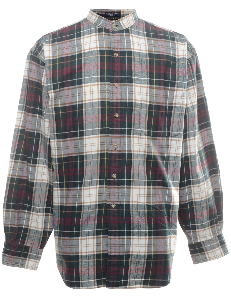 Long sleeved checked shirt in multi-colour with a classic collar and a grandad collar.