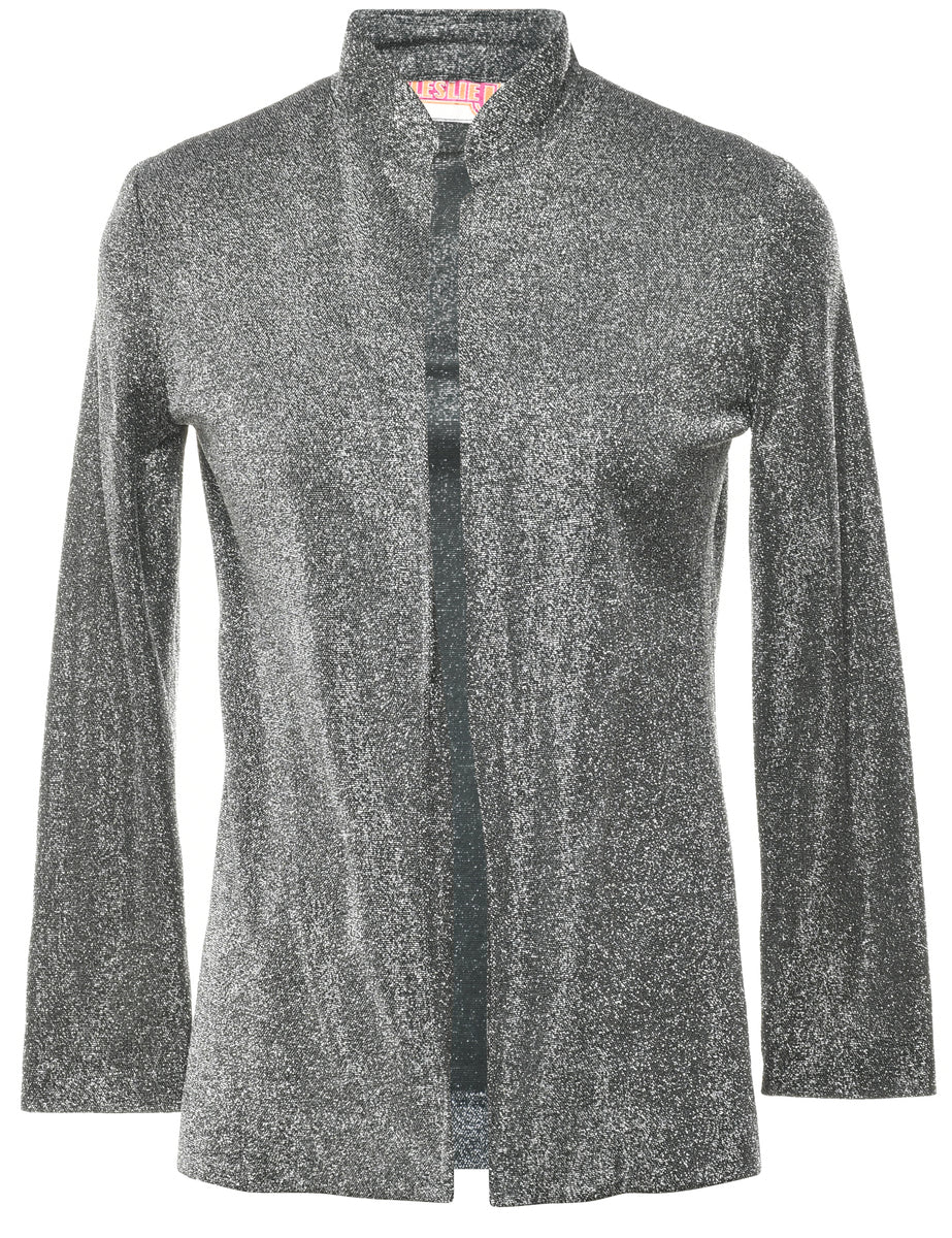 Lurex thread pattern evening jacket comes in dark grey with cheongsam.