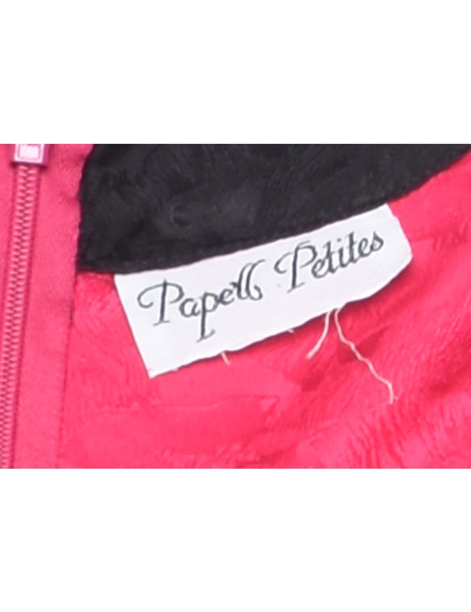 Midi length dress in magenta with decorative pockets.