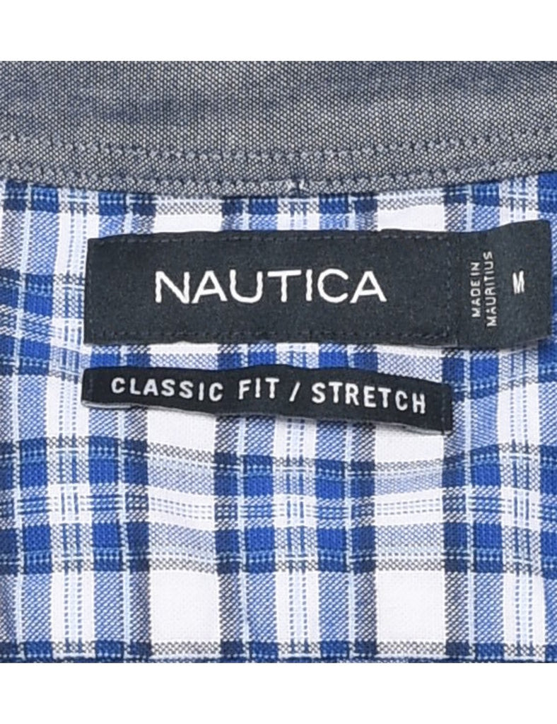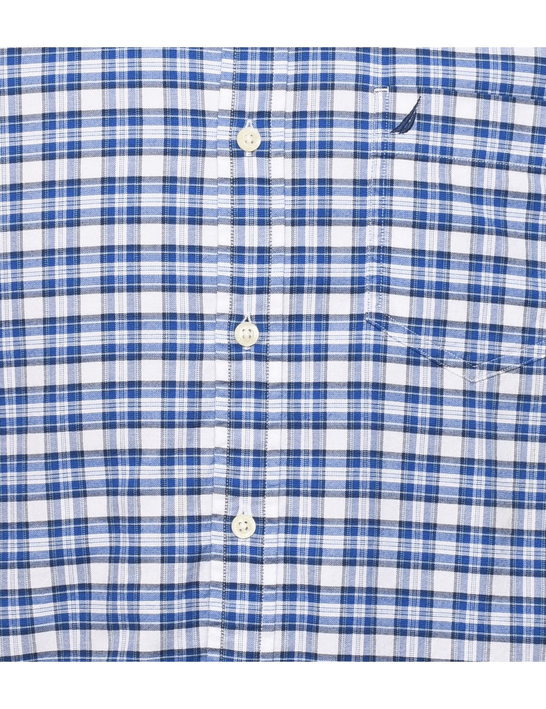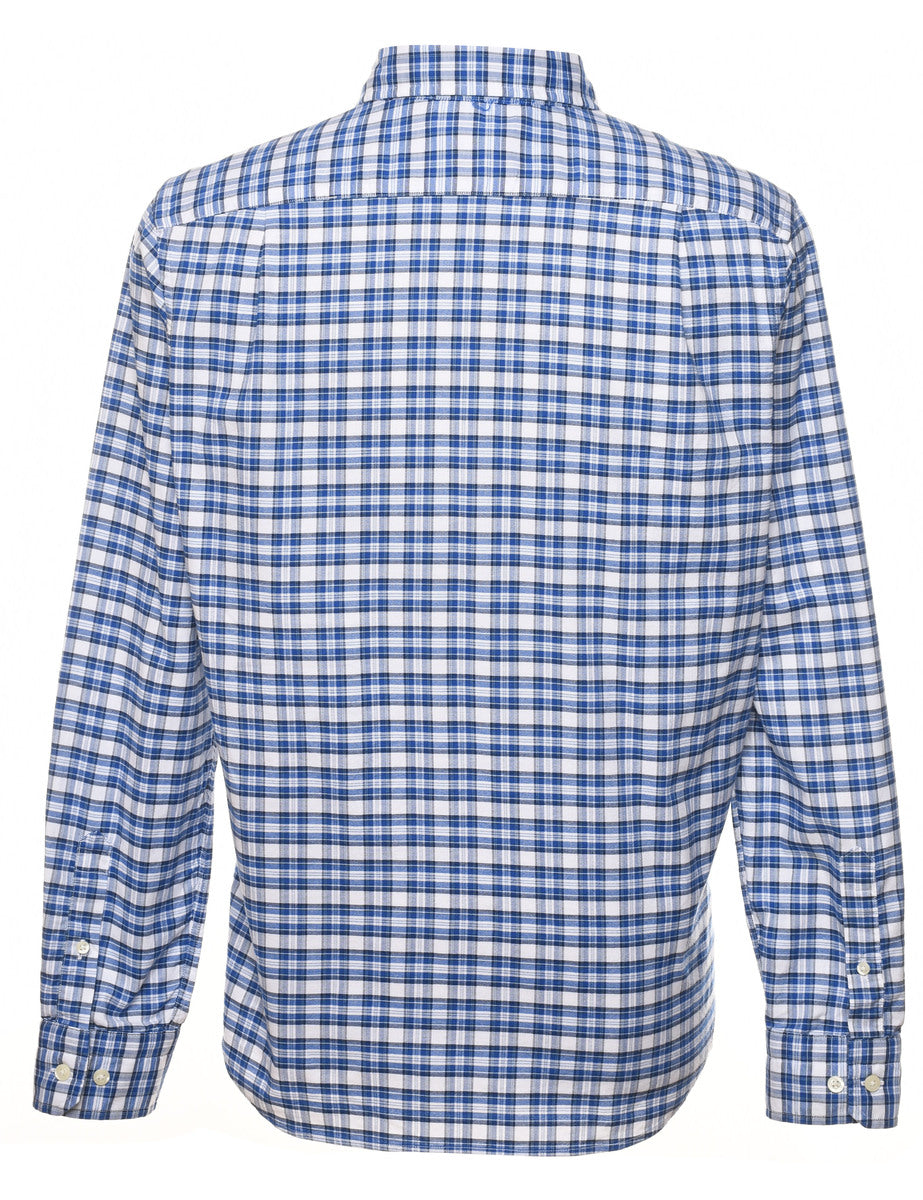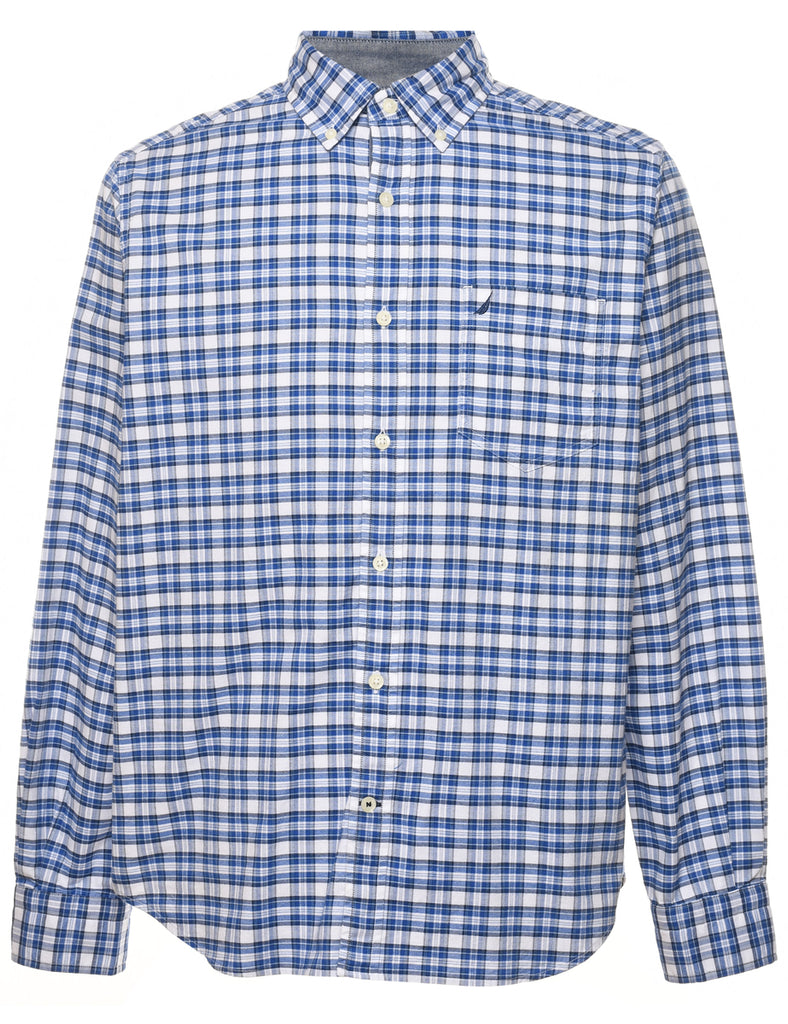 Nautica long-sleeved checked white & blue shirt complete with one pocket.