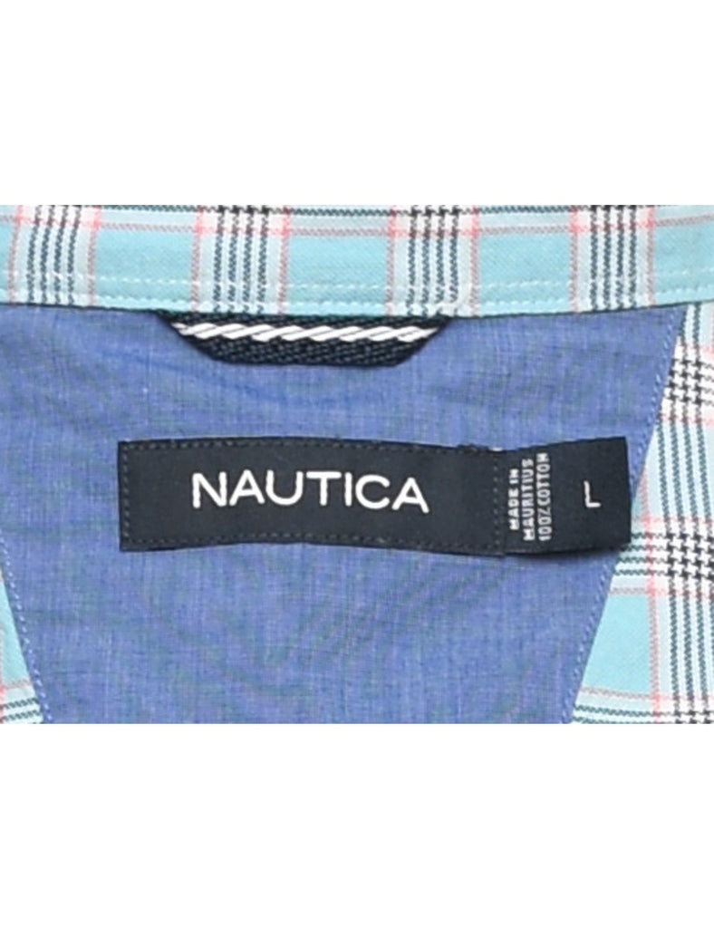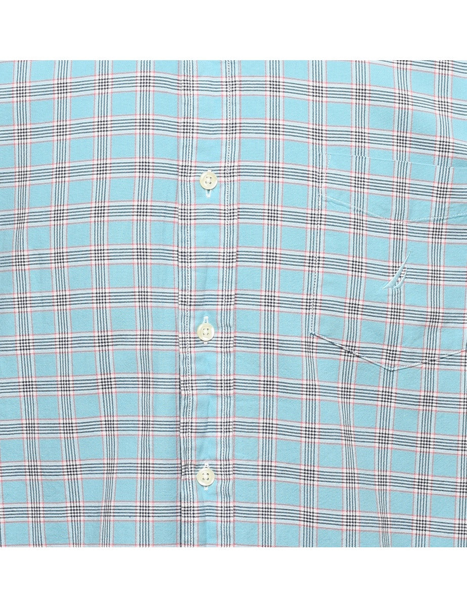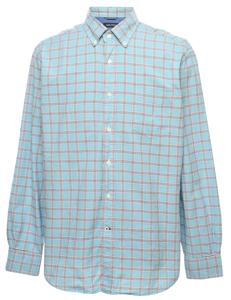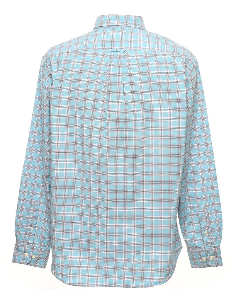 Long-sleeved checked light blue shirt complete with a classic collar.