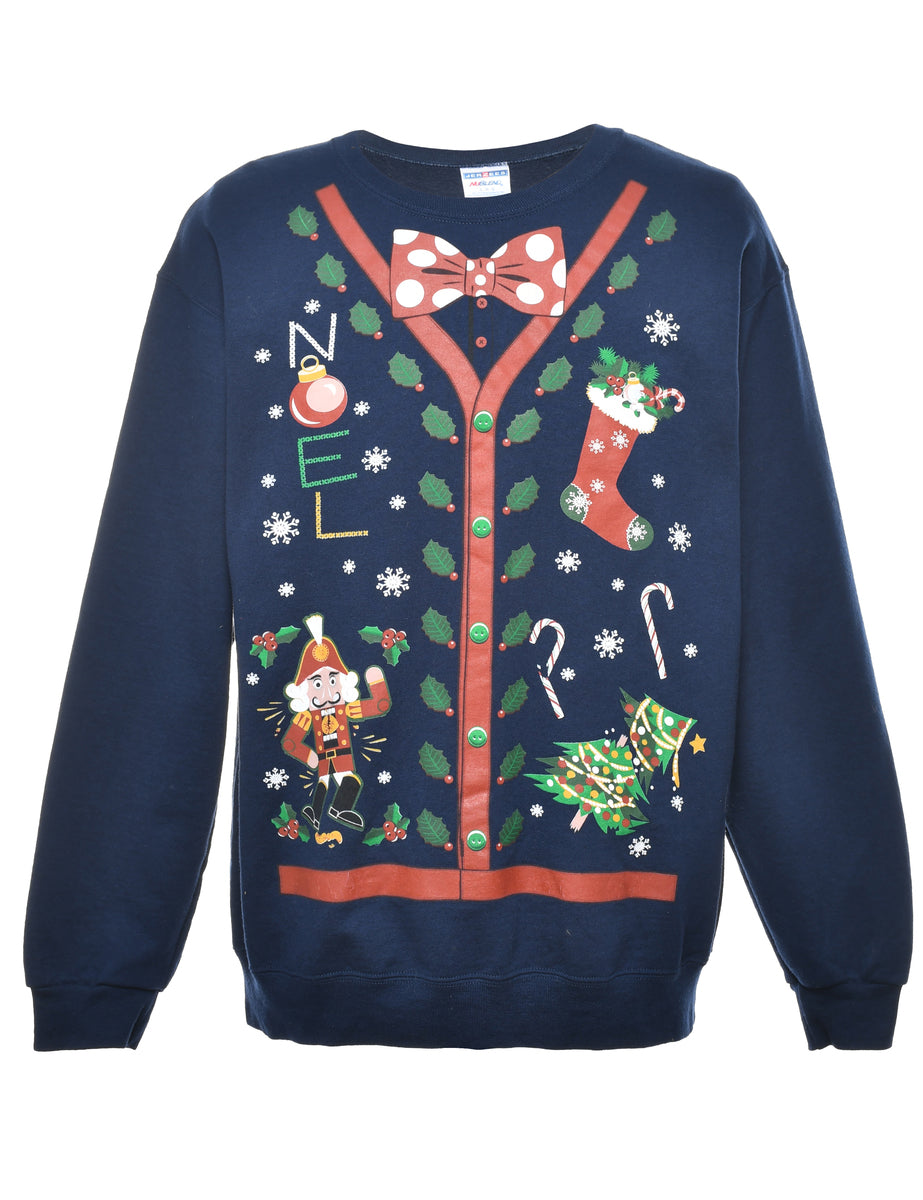 Navy Christmas Sweatshirt - L