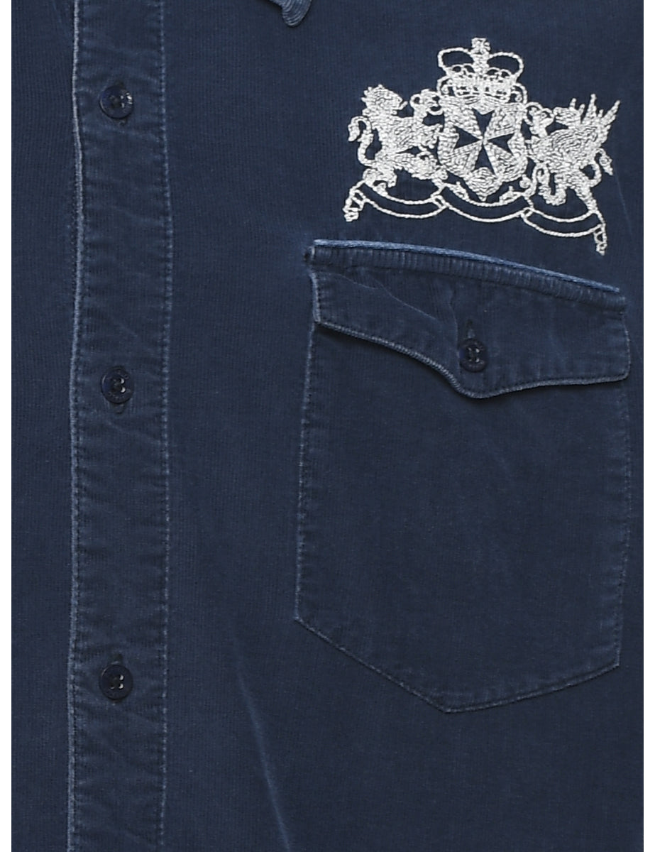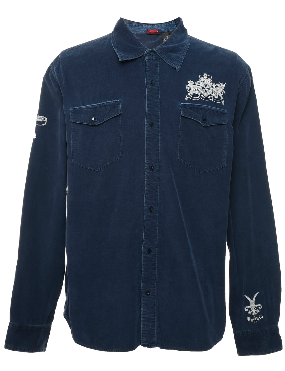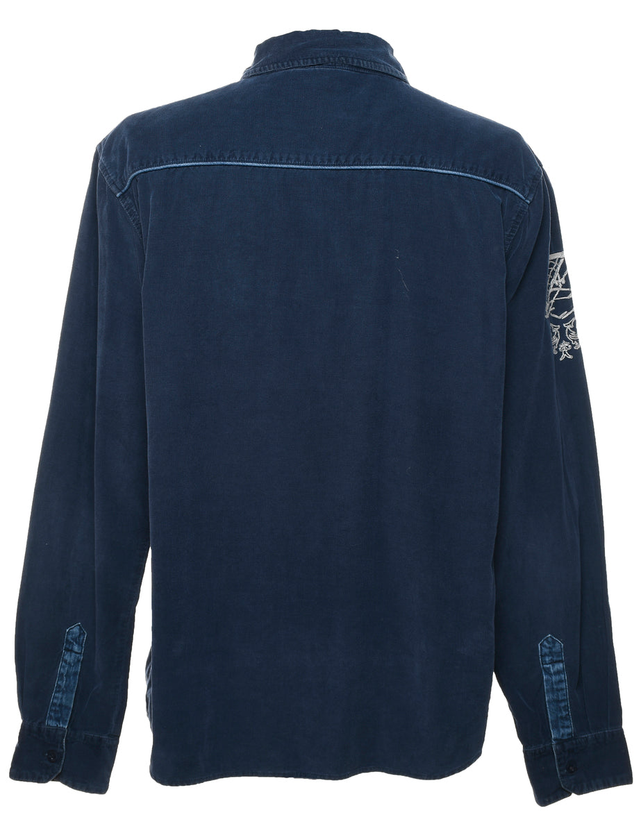 Vintage Navy Embroidered Corduroy Shirt - XL