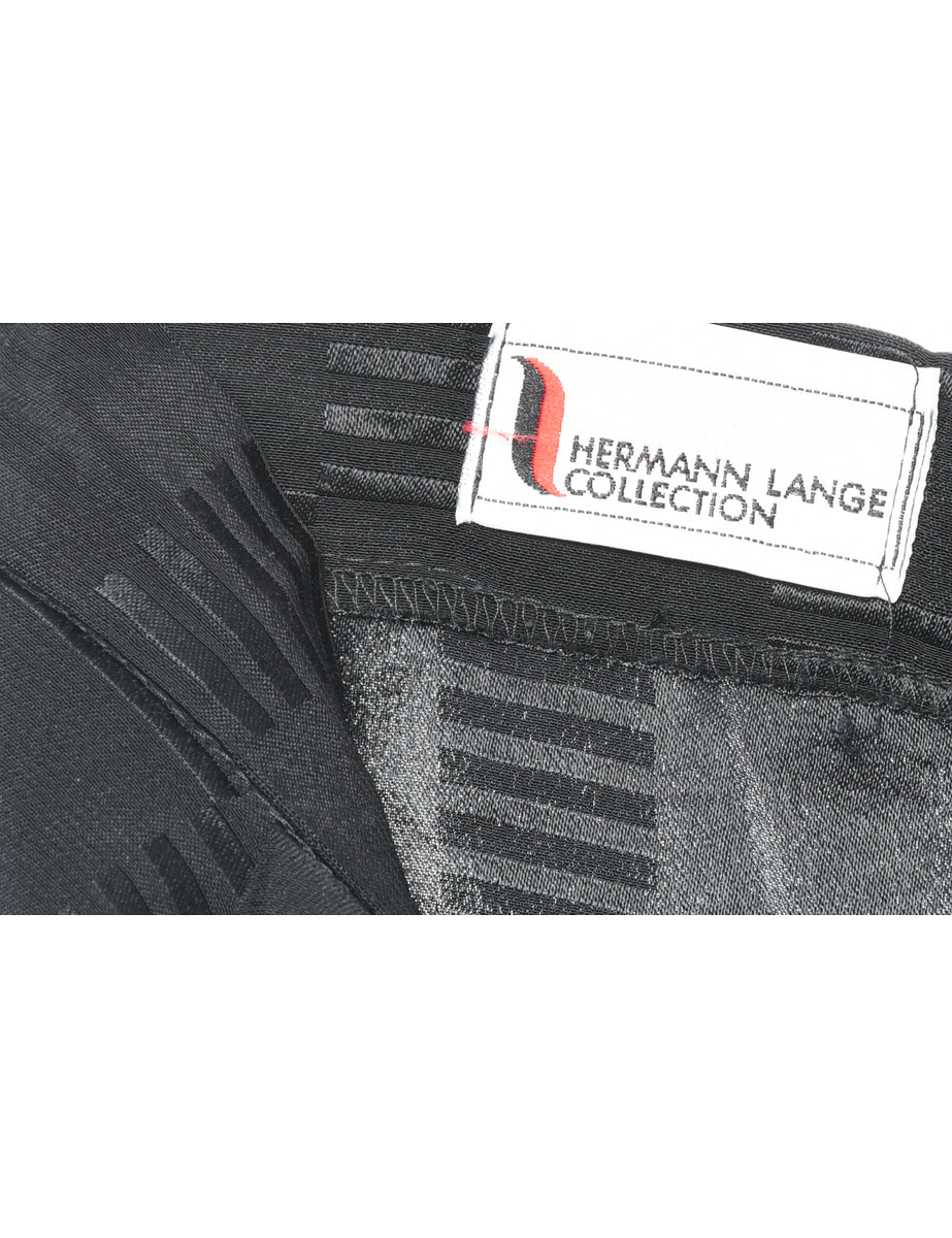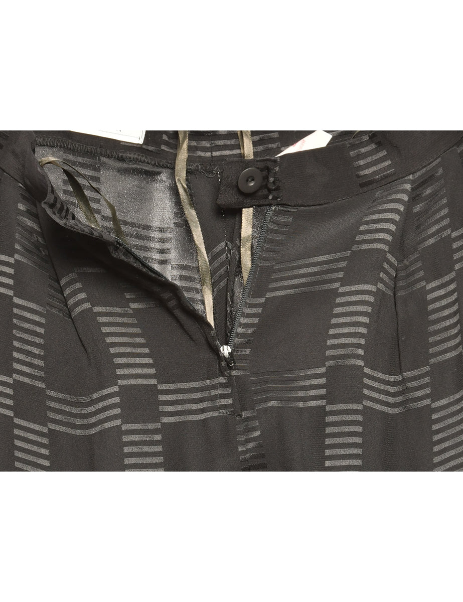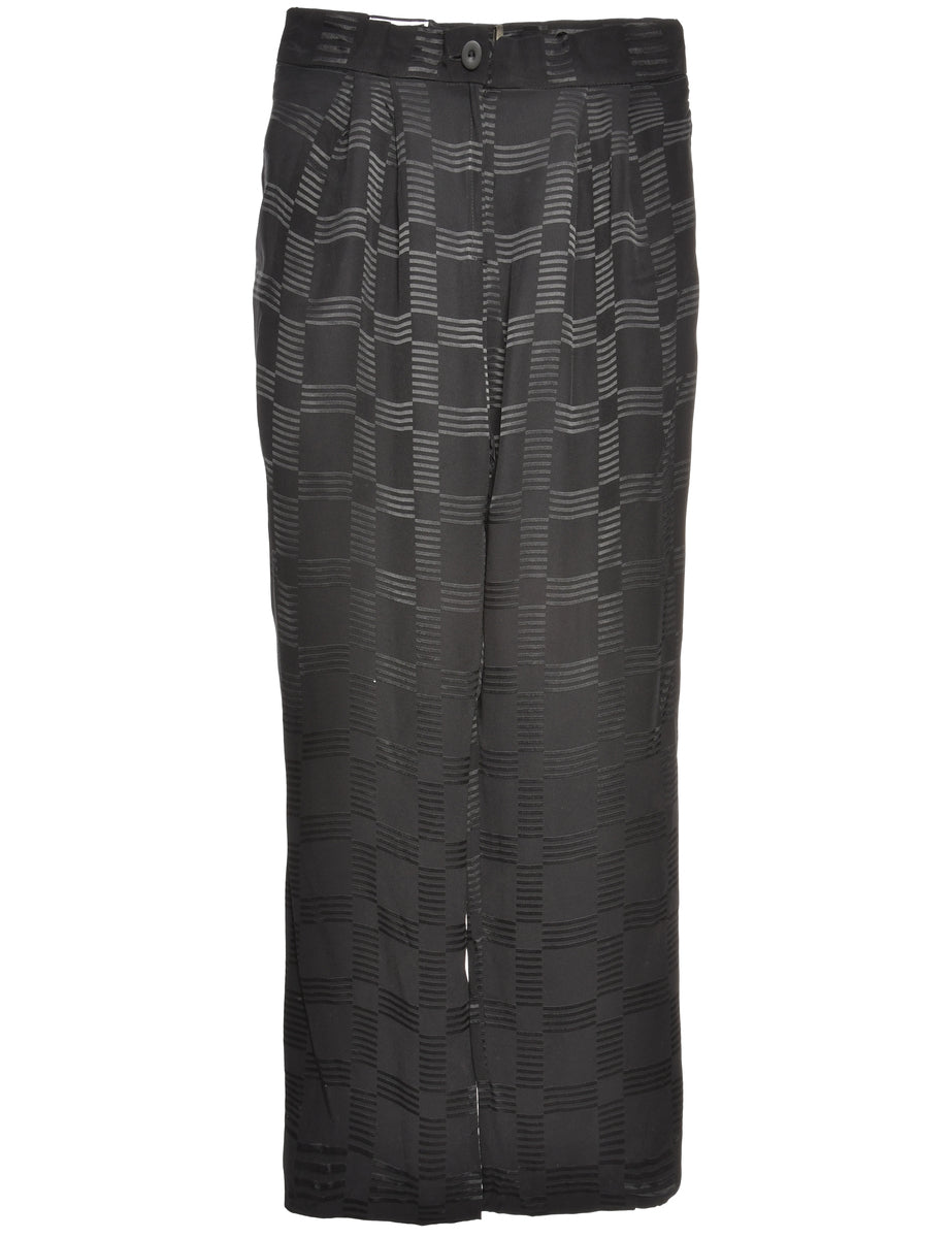 Patterned black casual trousers with two pockets.