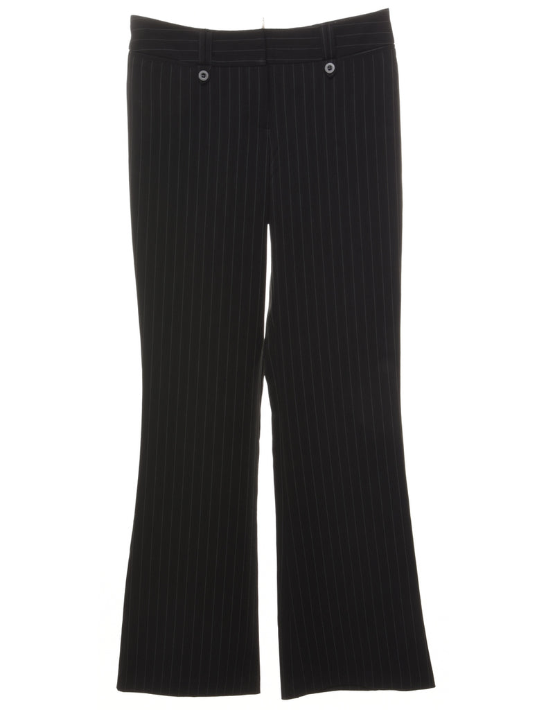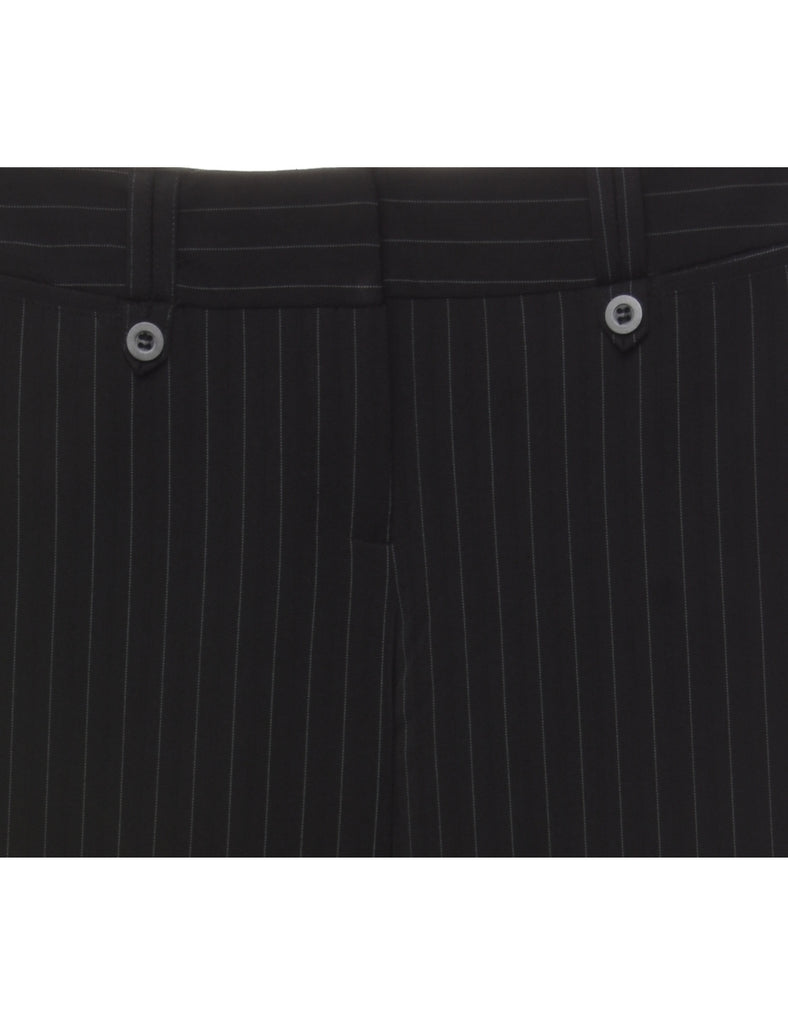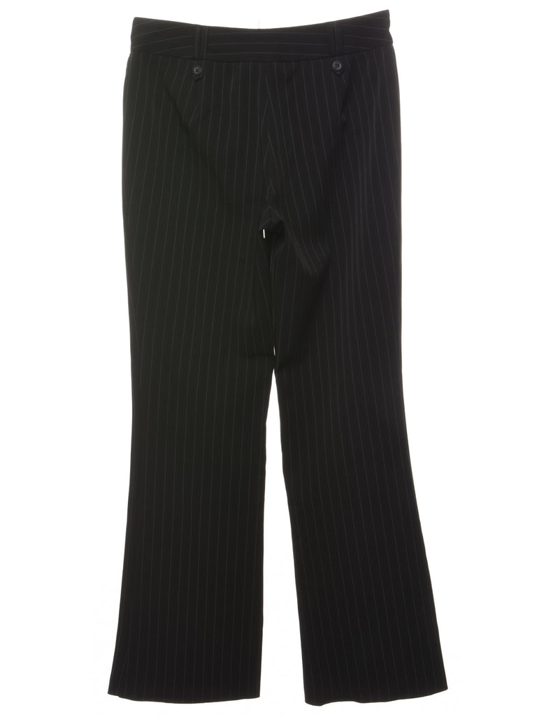 Flared leg trousers with pinstripes. Comes in black with belt loops.