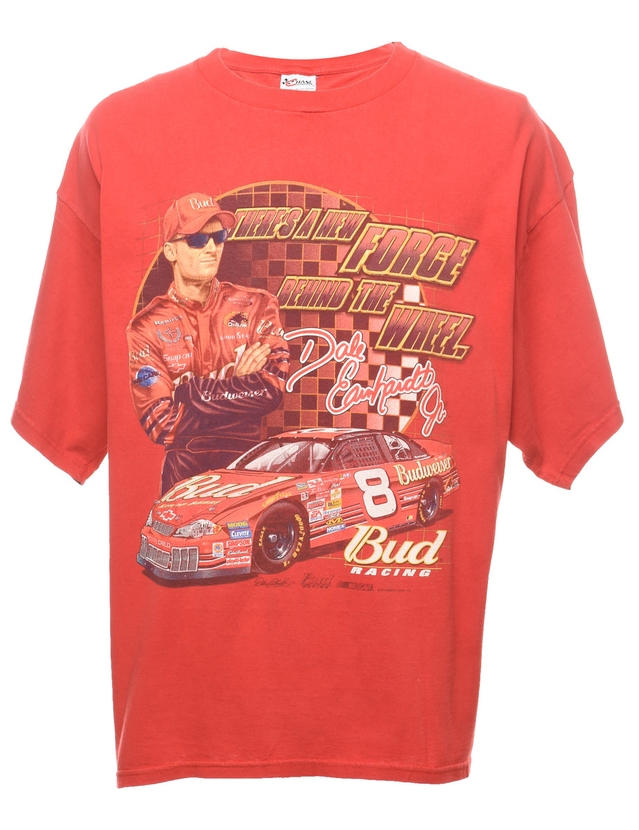 Vintage Red Printed NASCAR Design T-shirt - XL