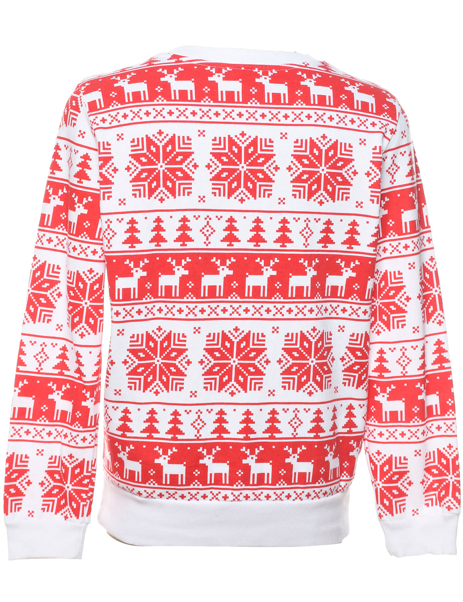 Vintage Reindeer Design Red & White Christmas Sweatshirt - L