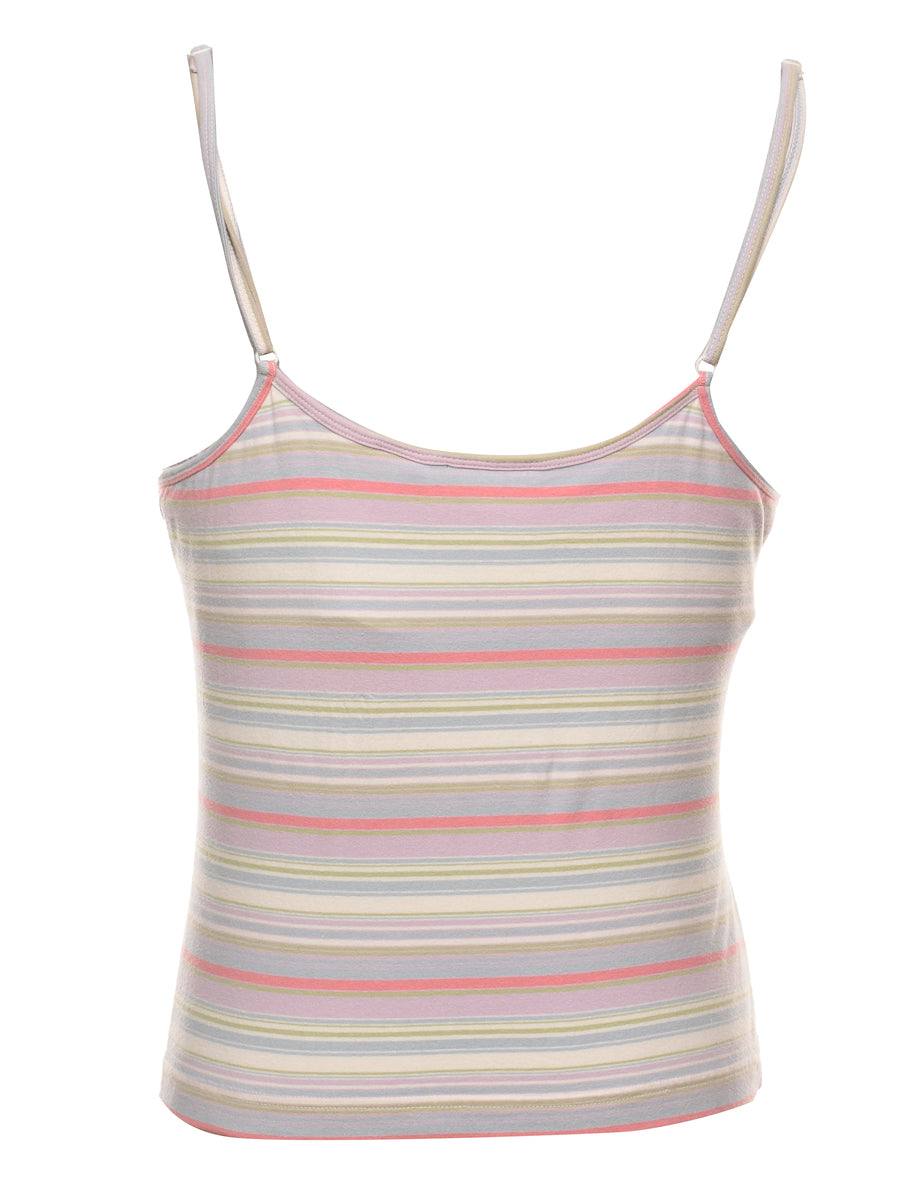 Striped strappy vest. Comes in multi-colour. The size label mentions XL but based on the actual measurements we consider it a size M.