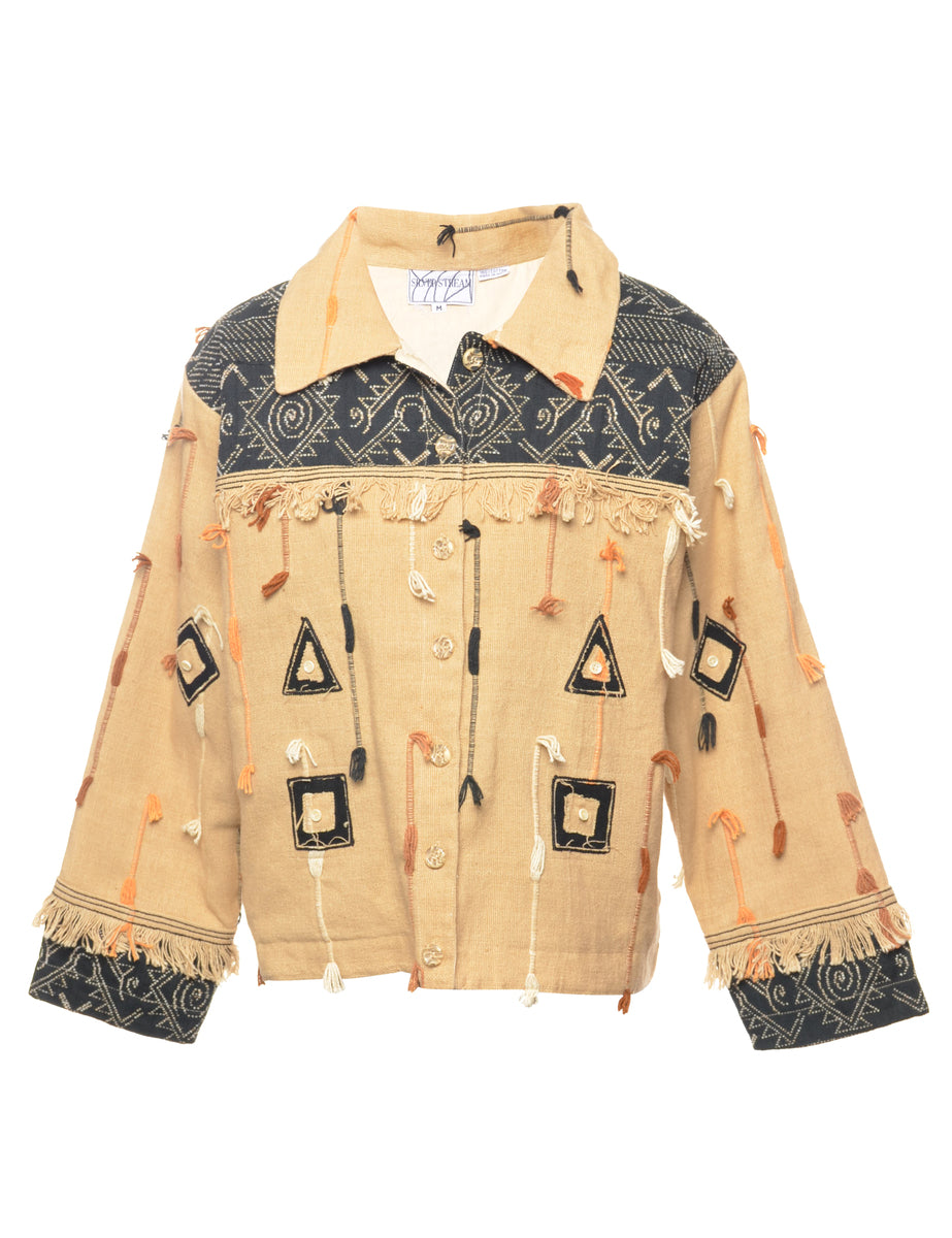 Vintage Tapestry Design Beige Embroidered Jacket - M