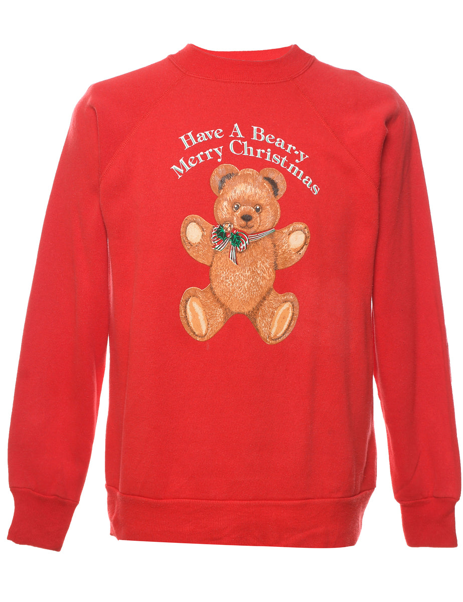 Vintage Teddy Bear Print Christmas Sweatshirt - L