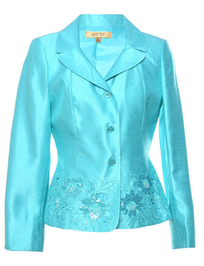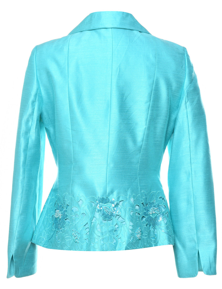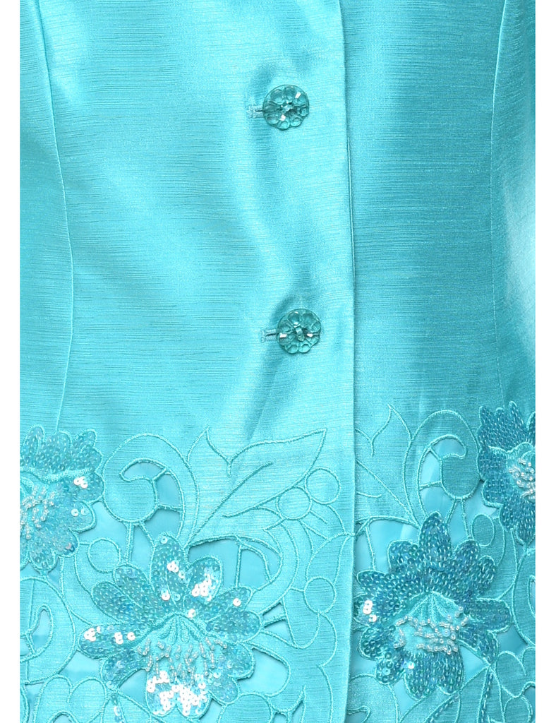 Turquoise embroidered evening jacket complete with full lining and built-in shoulder pads.