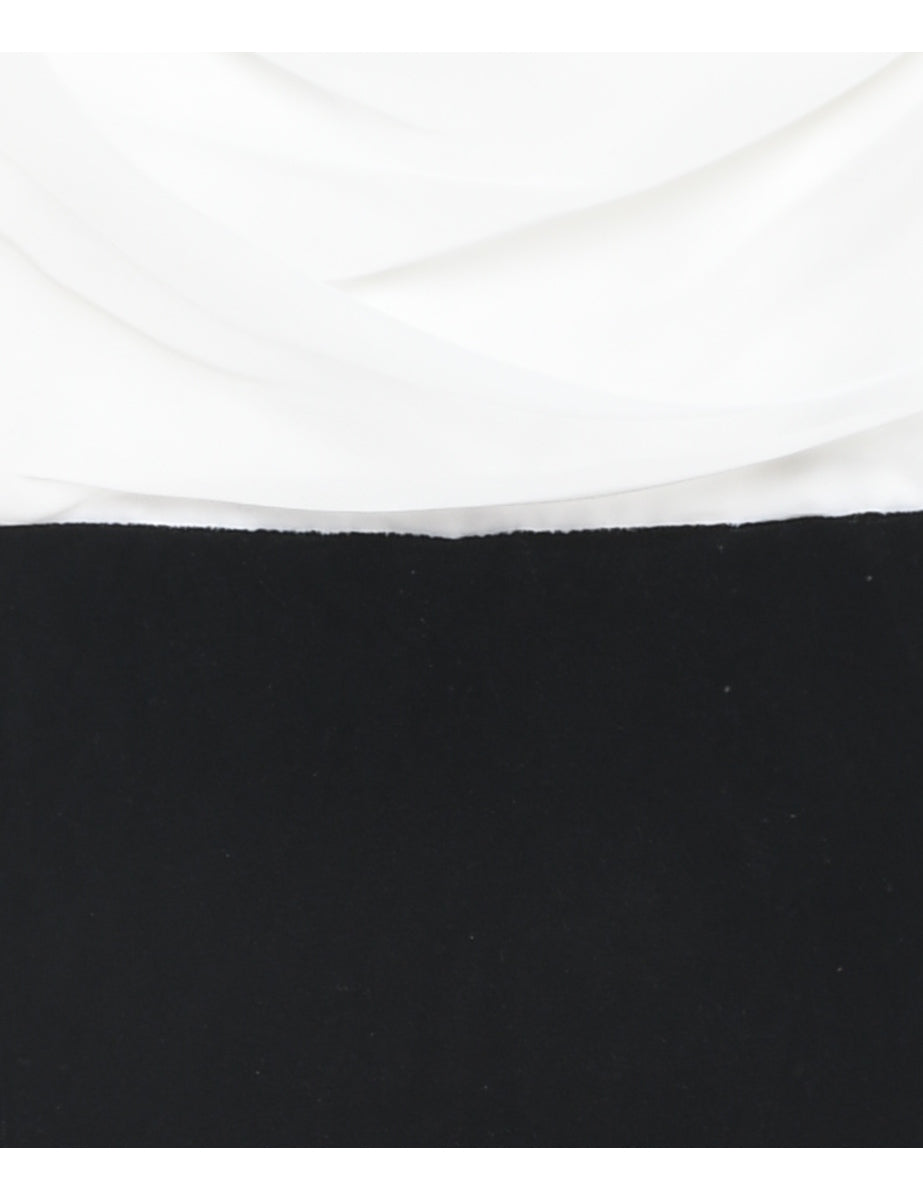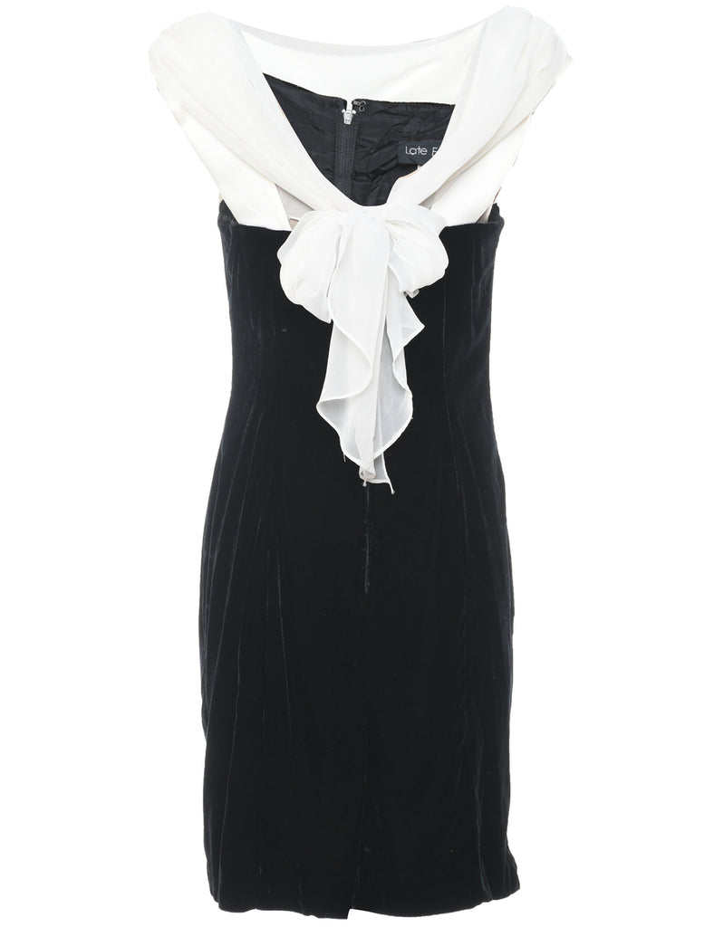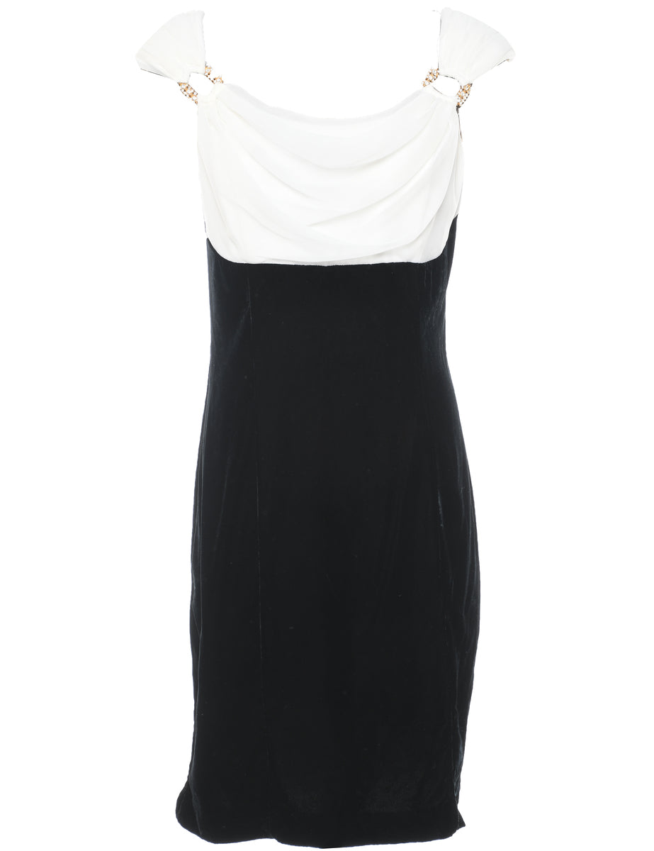 Two-tone evening dress in off-white & black with back tie and full lining.